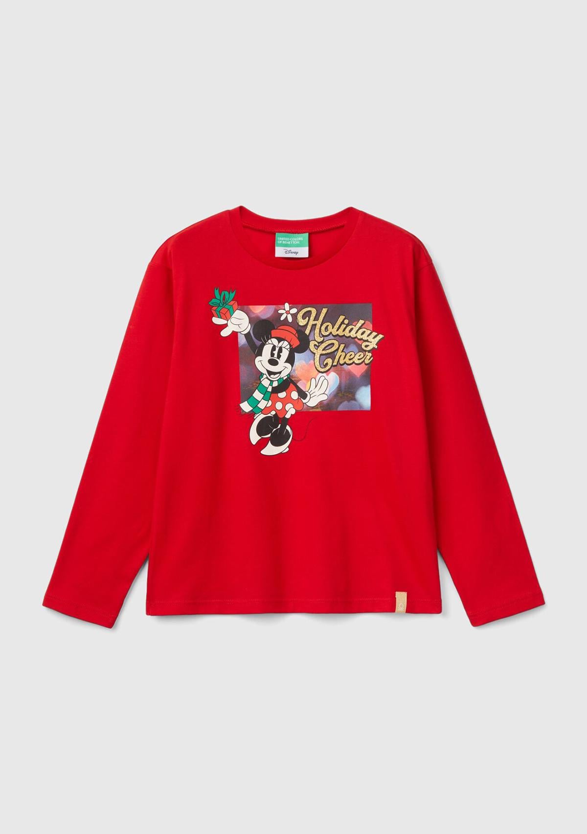 Kız Çocuk Kırmızı Etek Ucu Logo Etiketli Önü Baskılı Uzun Kollu T-Shirt