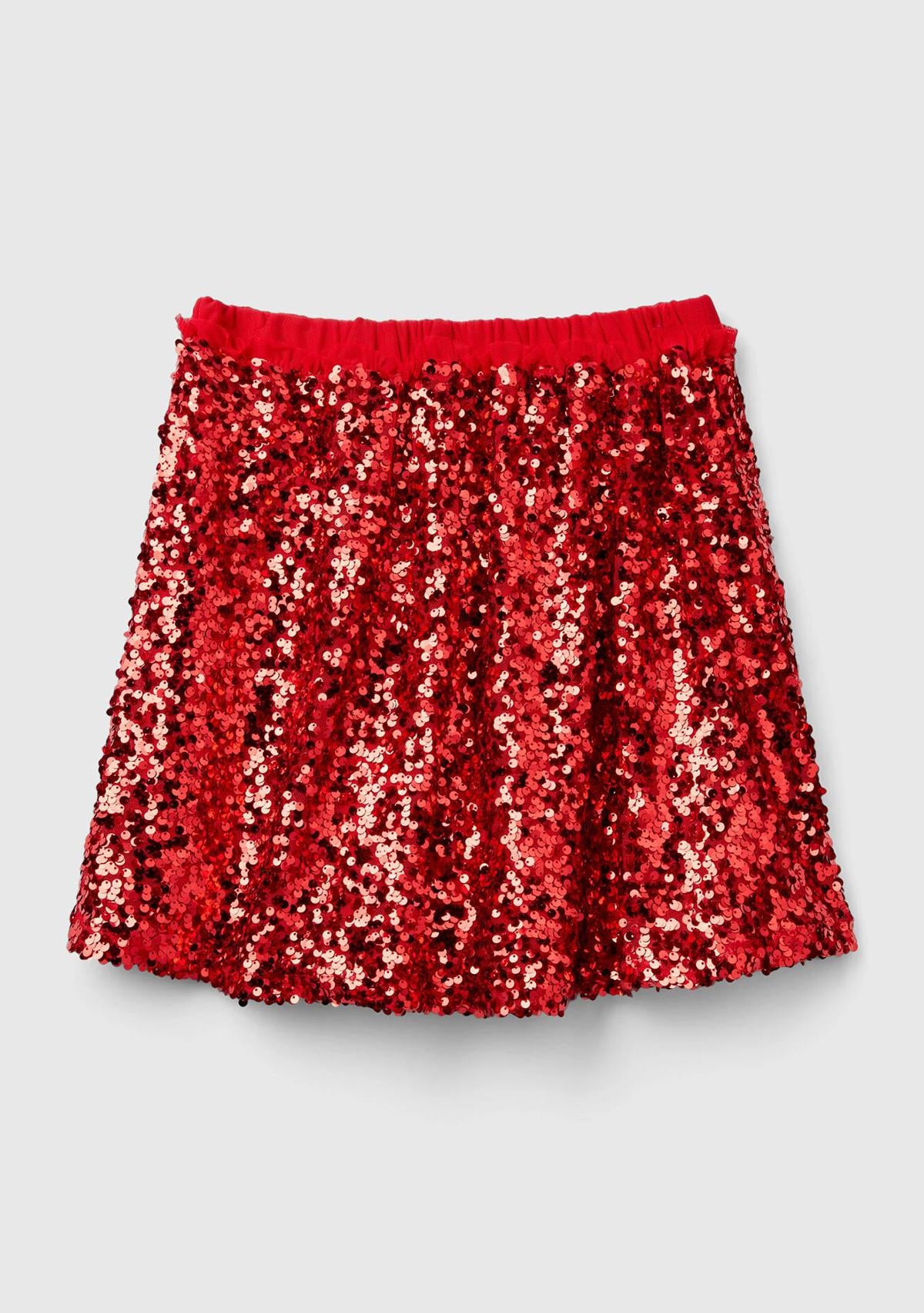 Kız Çocuk Kırmızı Tamamı Desenli Beli Lastikli Fırfır Detaylı Mini Etek