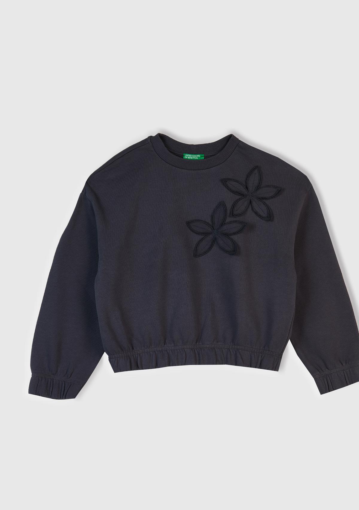 Kız Çocuk Koyu Gri İşlemeli Aplikeli Logo Detaylı Ribana Relaxed Fit Sweatshirt