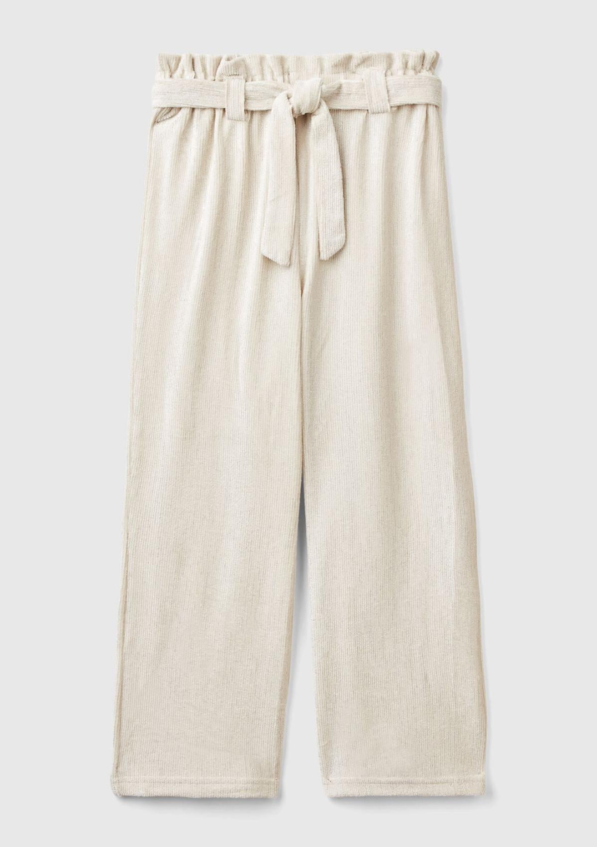 Kız Çocuk Krem Beli Fırfırlı Kuşaklı Geniş Paça Eşofman Altı