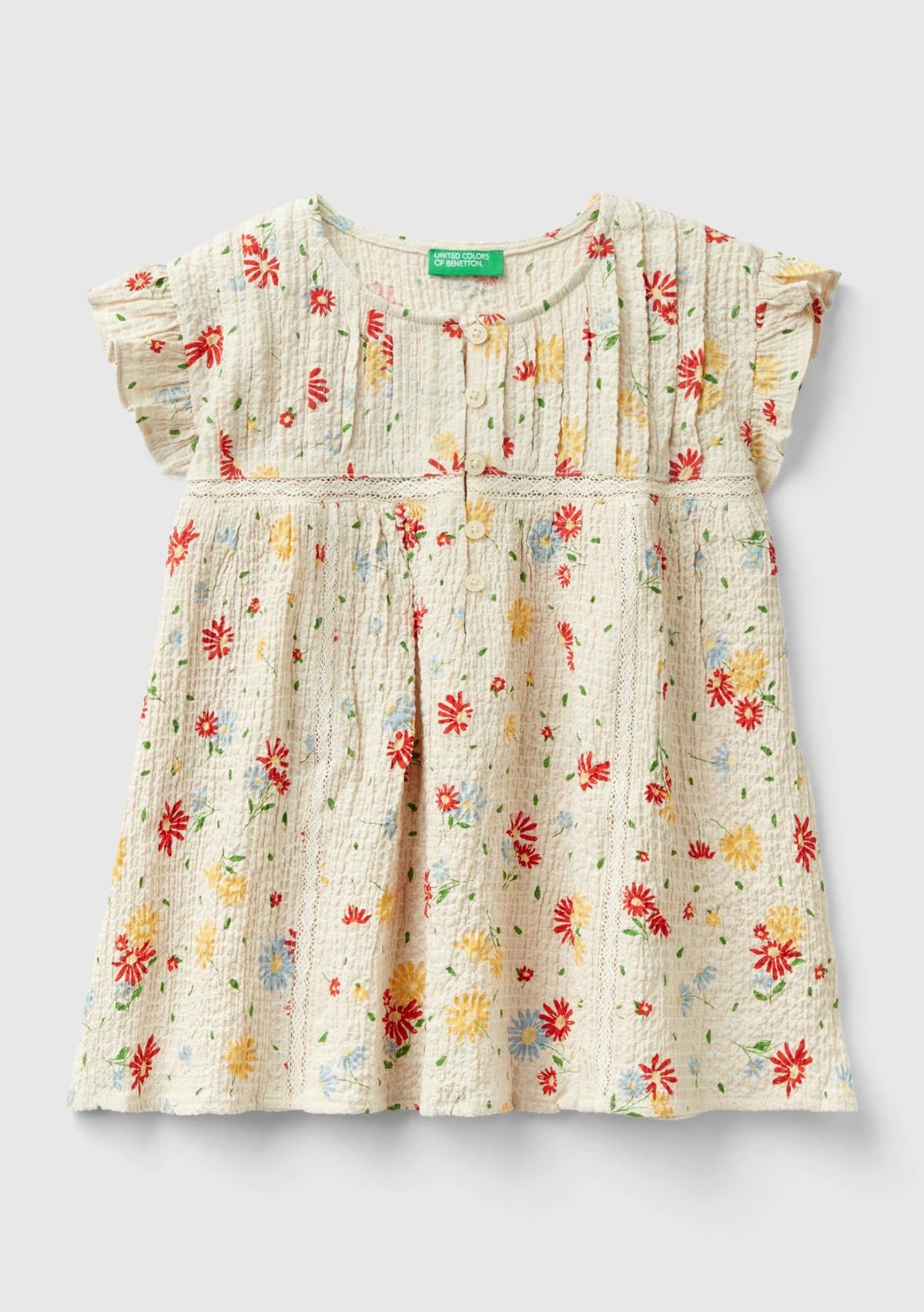 Kız Çocuk Krem Mix Önü Düğme Kapamalı Tamamı Desenli Bluz