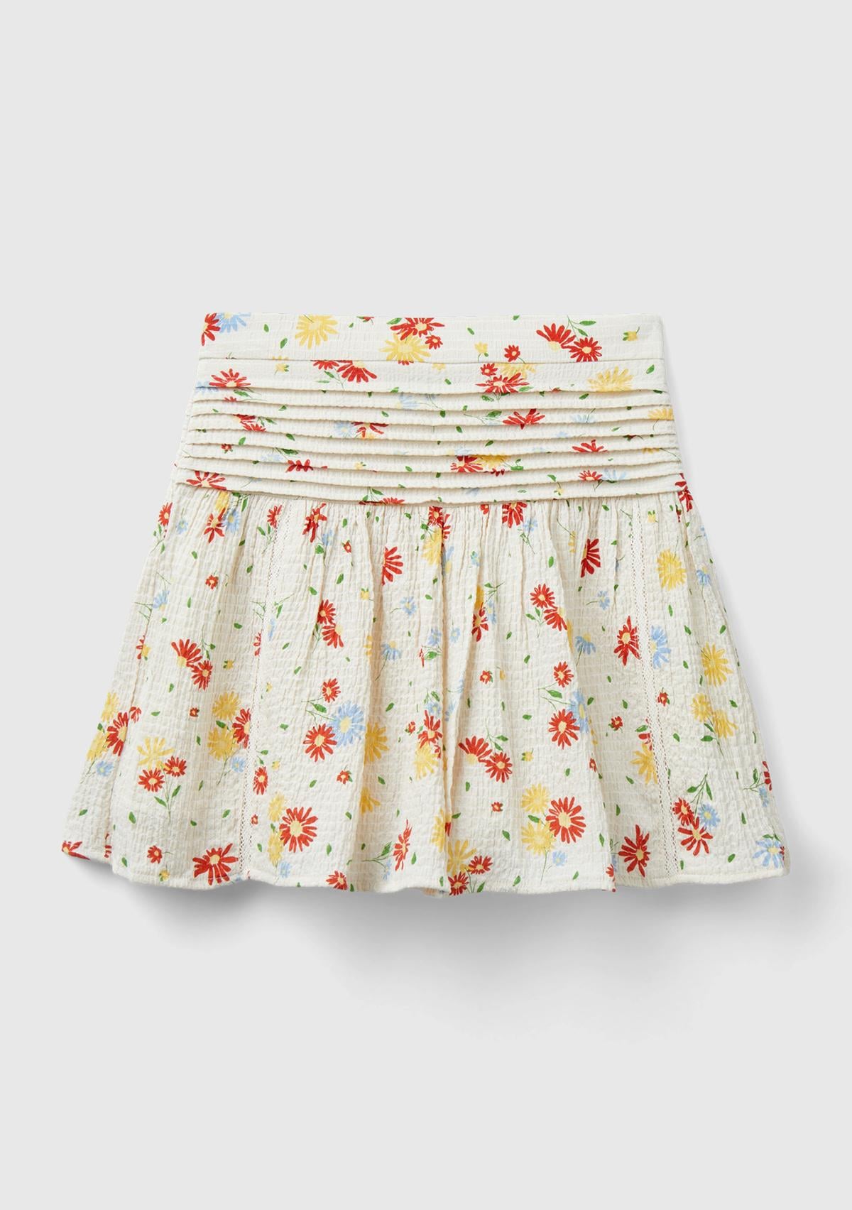 Kız Çocuk Krem Mix Yandan Fermuarlı Tamamı Desenli Mini Kloş Etek