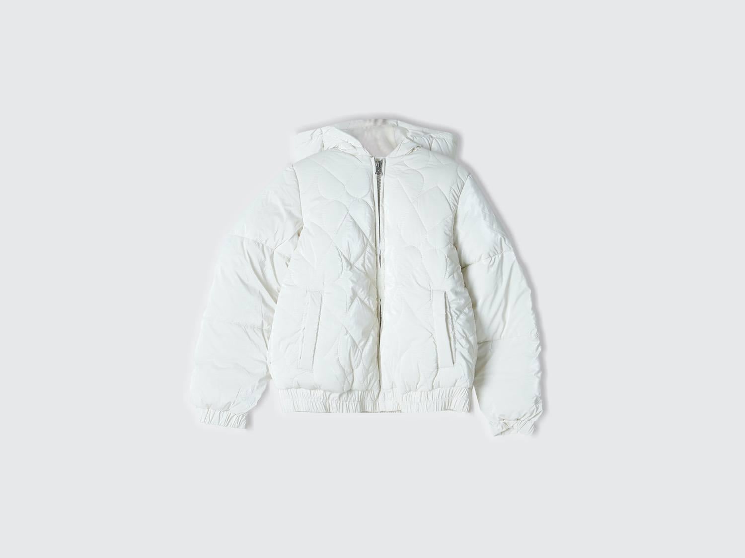 Kız Çocuk Krem Önü Kapitoneli Fermuar Kapamalı Suni Kuş Tüyü Ceket