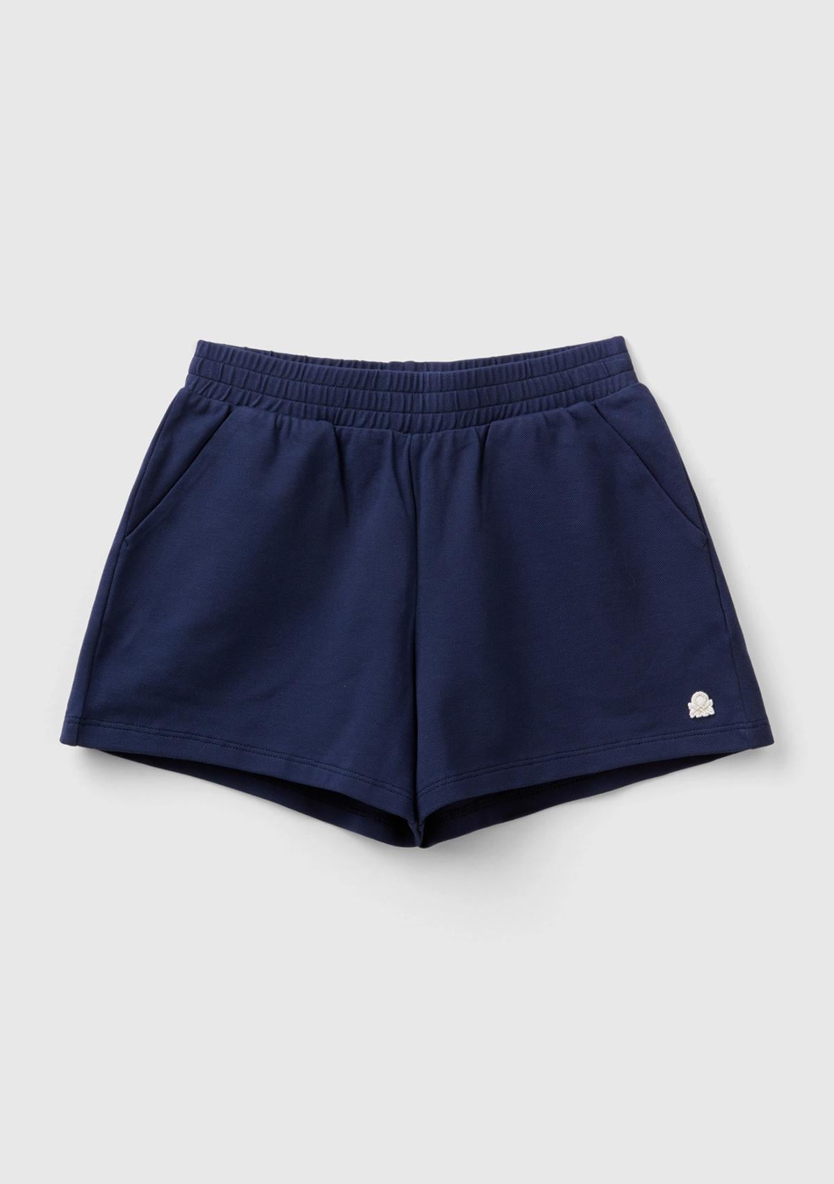 Kız Çocuk Lacivert Önü Logo İşlemeli Beli Büzgülü Pileli Şort