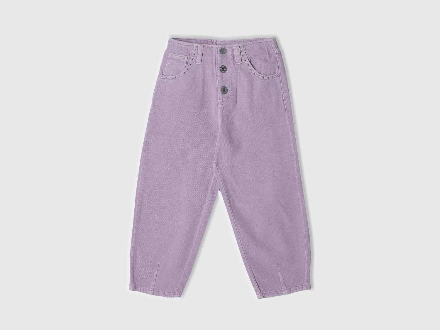Kız Çocuk Lila 5 Cepli Düğme Kapamalı Paça Detaylı Pantolon