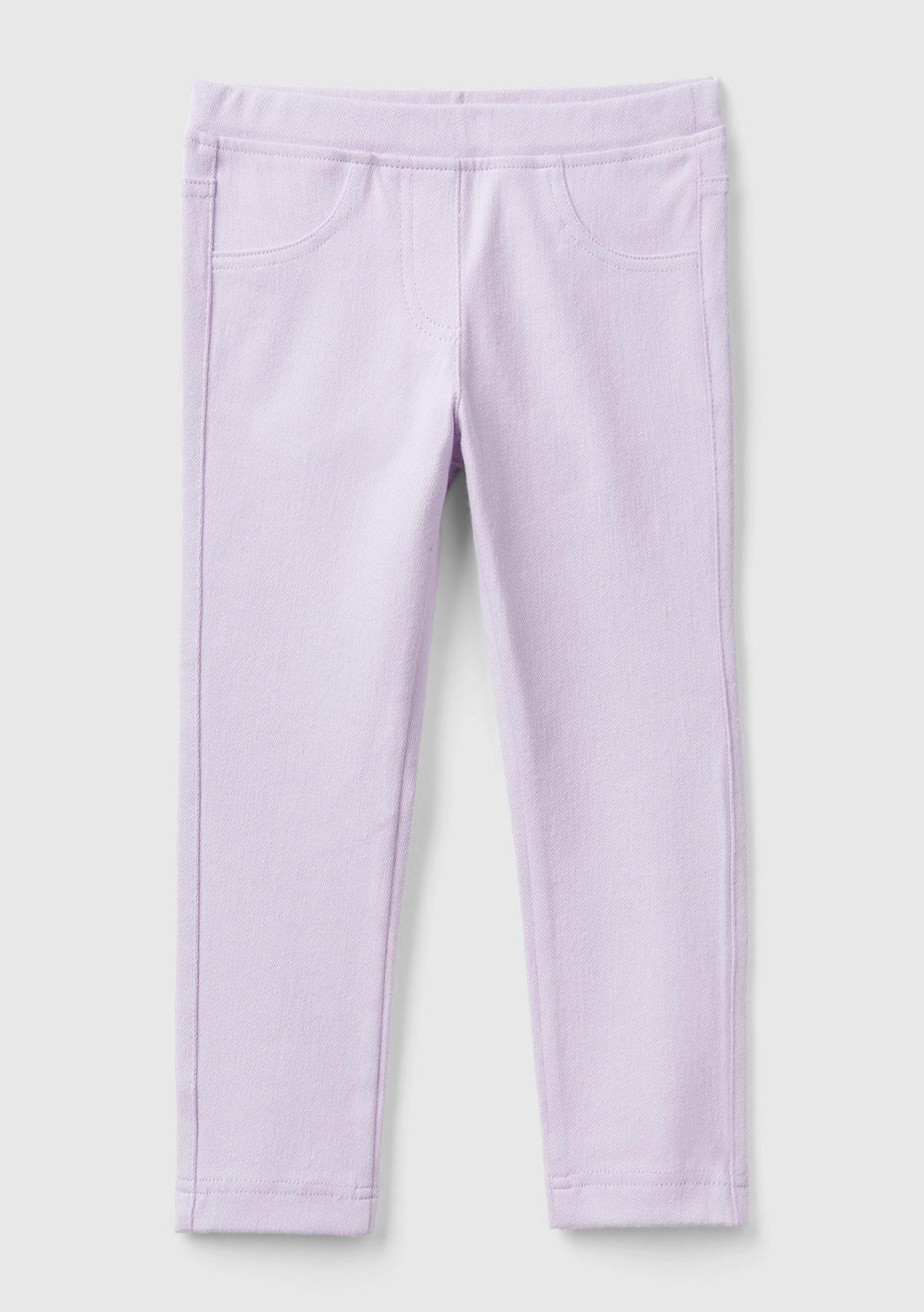 Kız Çocuk Lila Arka Cebi Logo İşlemeli Beli Lastikli Dar Kesim Pantolon