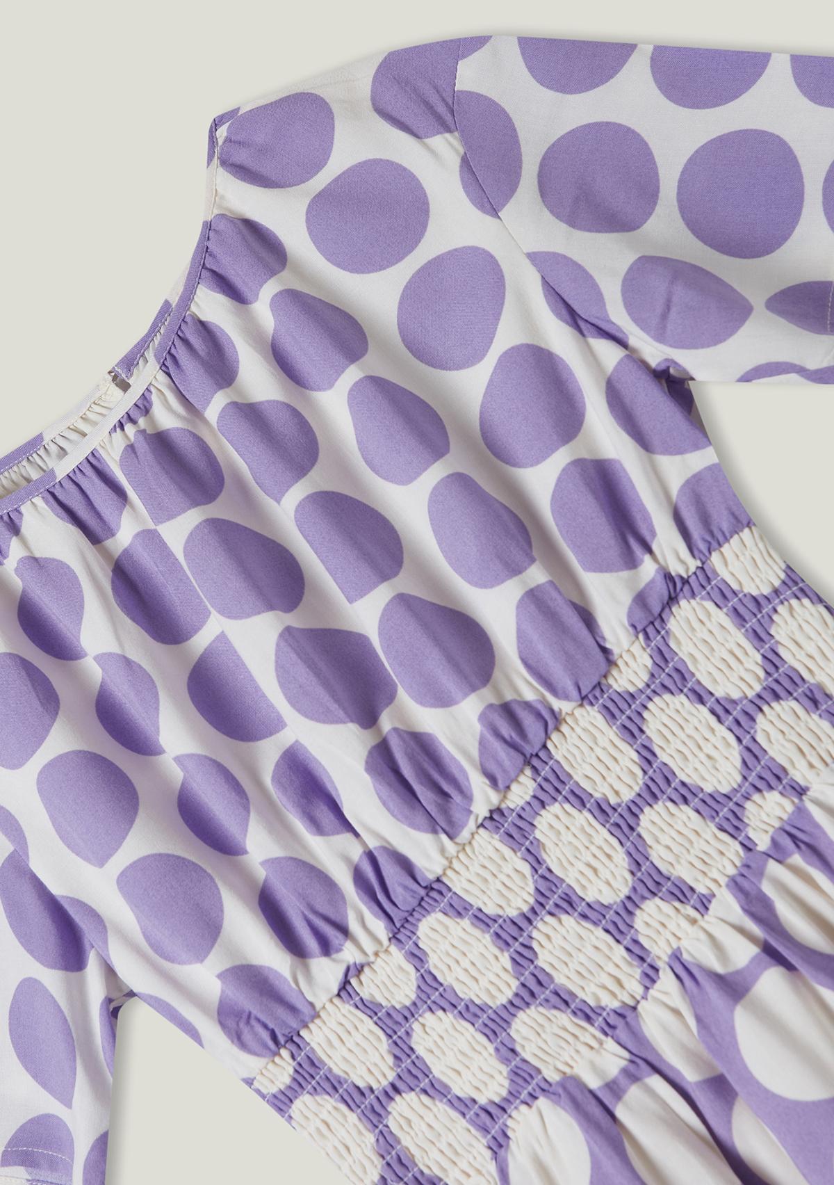 Kız Çocuk Lila Beli Lastikli Puantiye Desenli Elbise