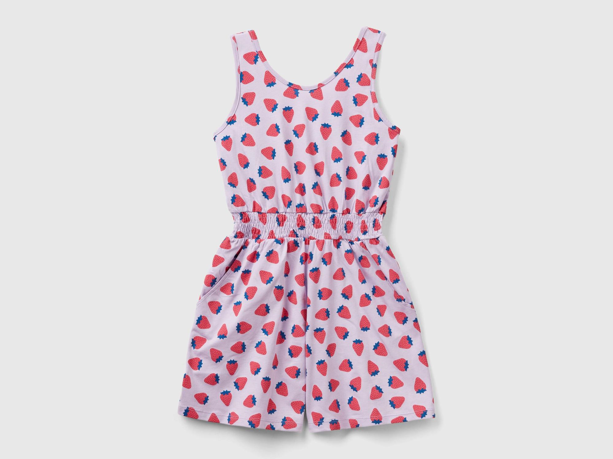 Kız Çocuk Lila Mix Tamamı Desenli Beli Büzgülü Bisiklet Yaka Şortlu Tulum