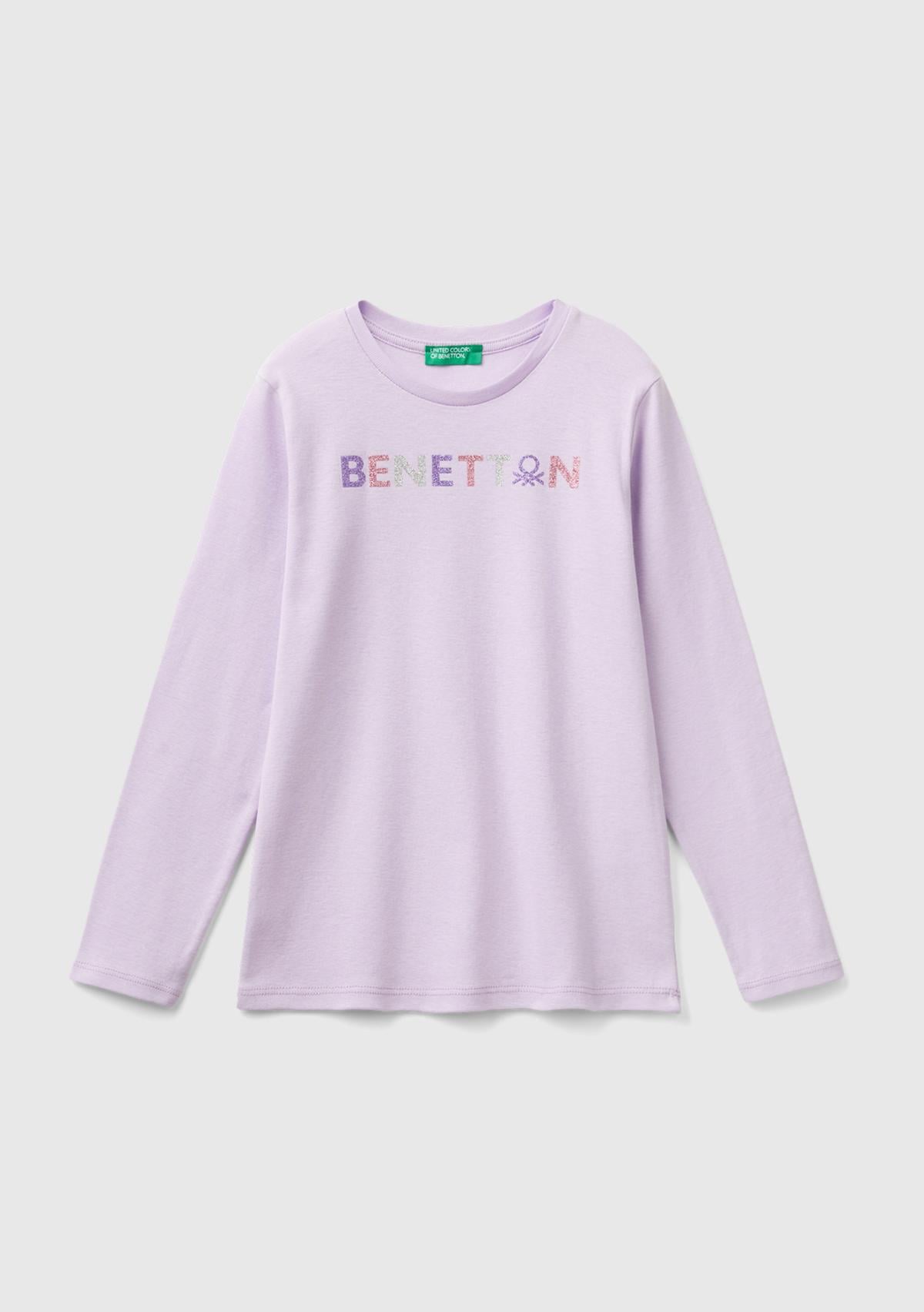 Kız Çocuk Lila Önü Parıltılı Logo Baskılı Regular Fit Uzun Kollu T-Shirt