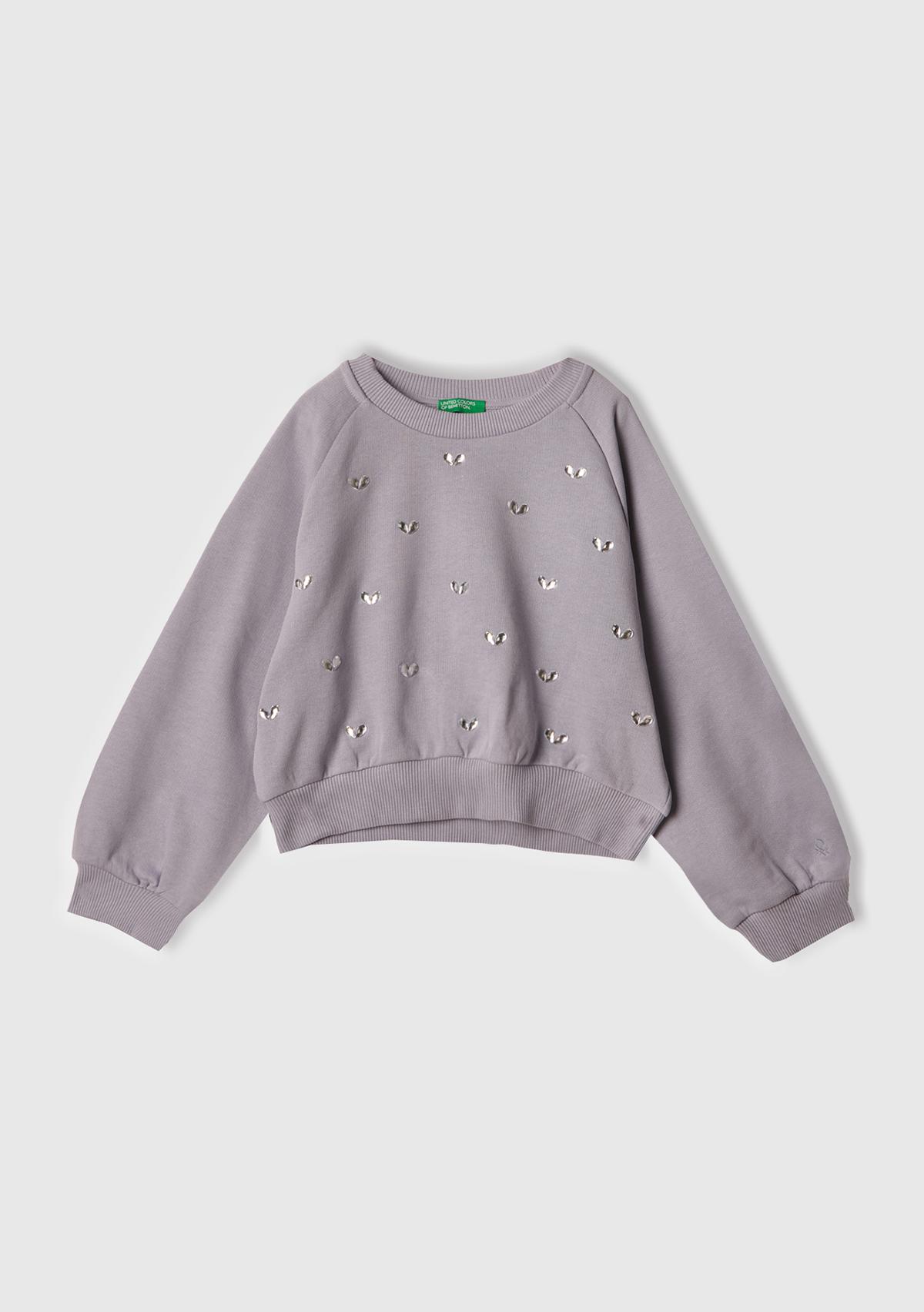 Kız Çocuk Lila Önü Taş Detaylı Ribanalı Bisiklet Yaka Sweatshirt
