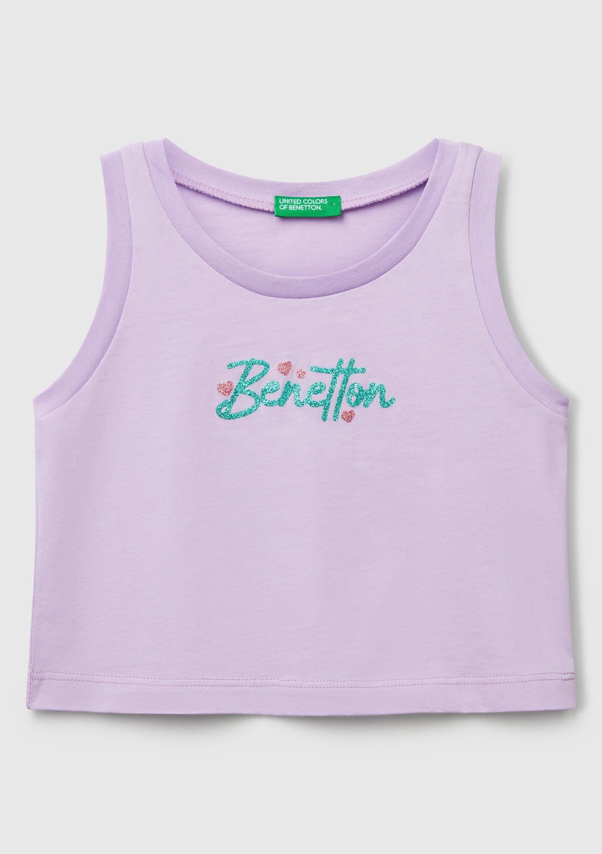 Kız Çocuk Lila Simli Benetton Logo Baskılı Atlet