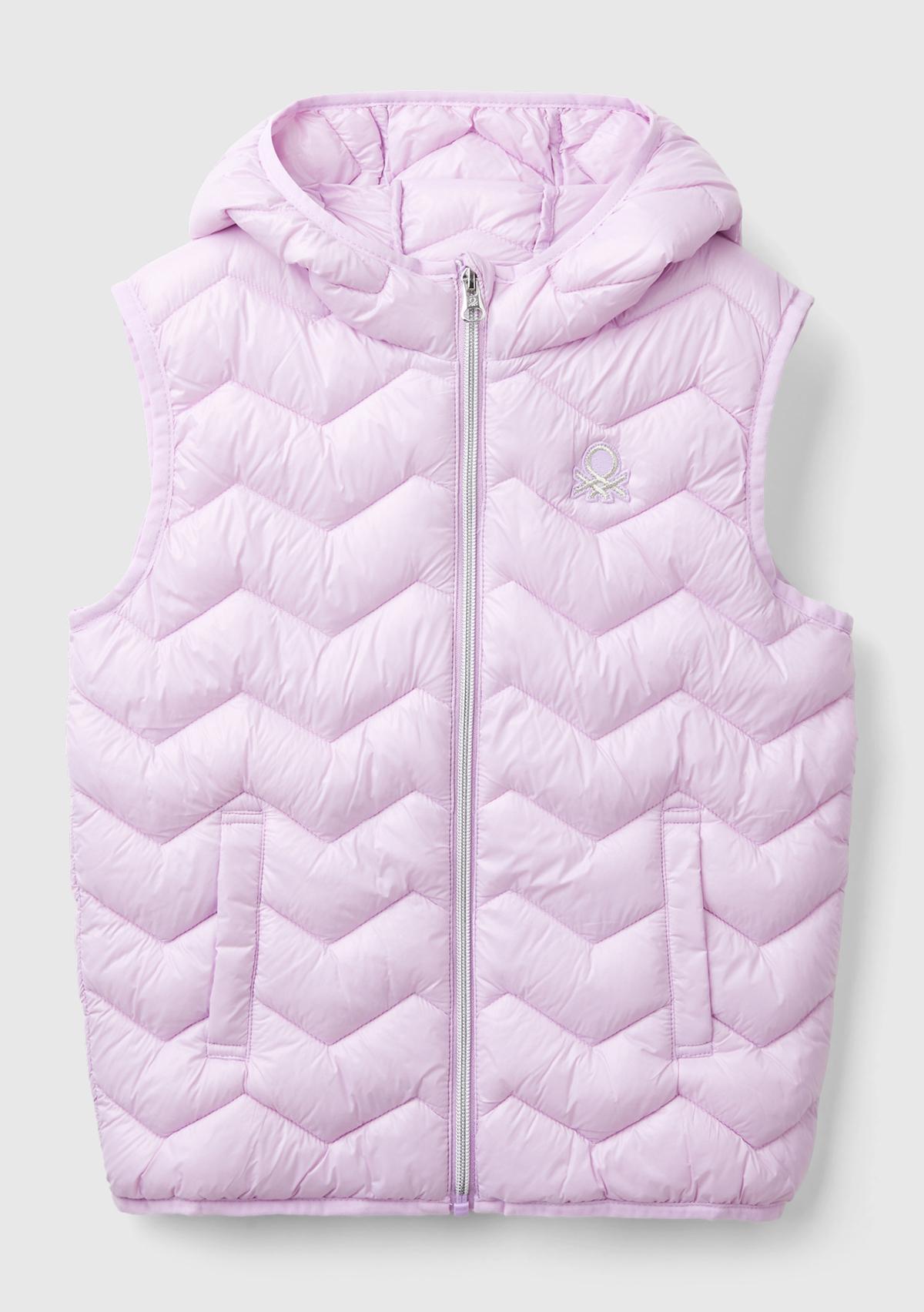 Kız Çocuk Lila Sol Göğsü Logo İşlemeli Yanları Cepli Kapüşonlu Pufa Yelek