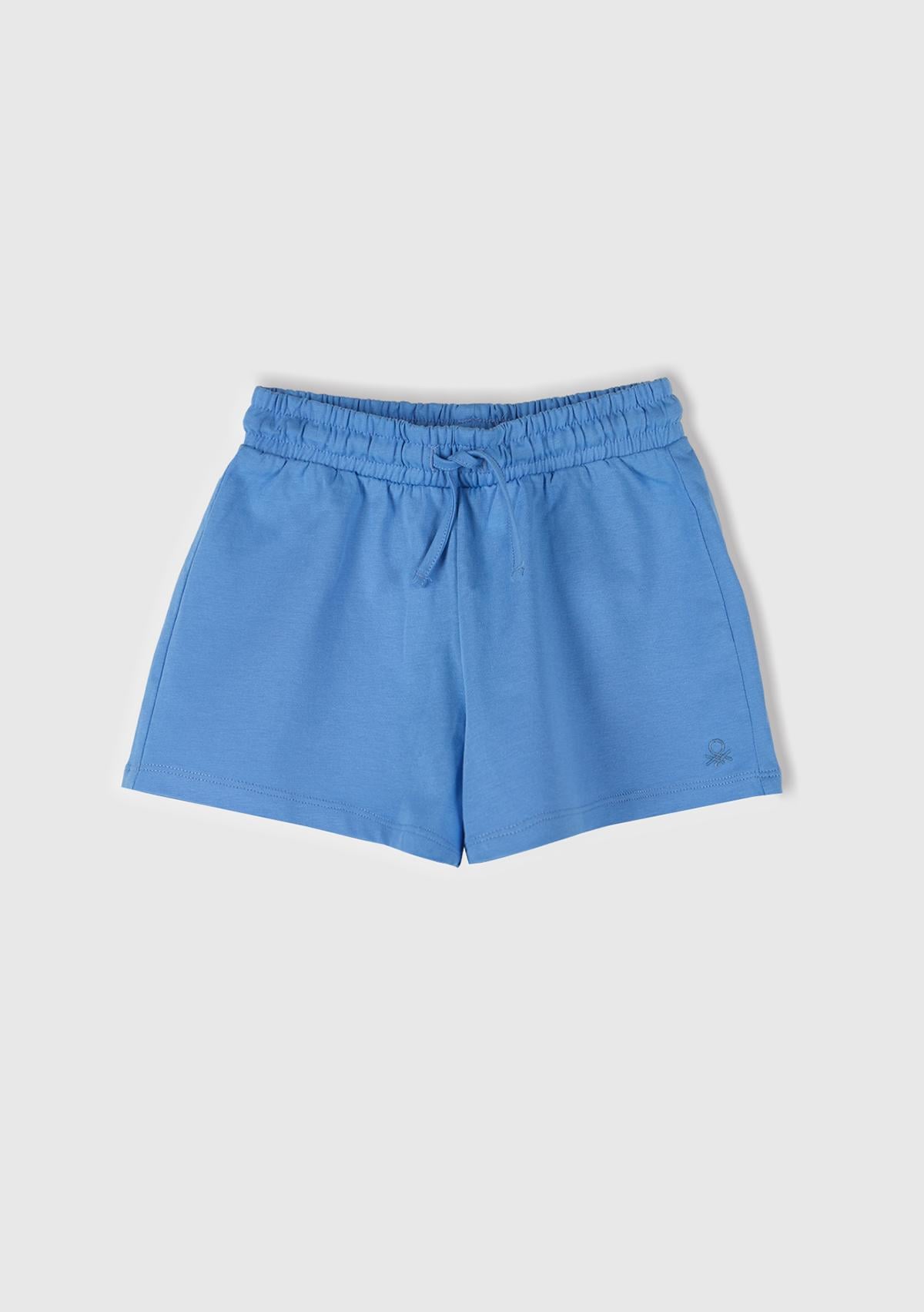 Kız Çocuk Mavi Logo İşlemeli Beli İpli Şort