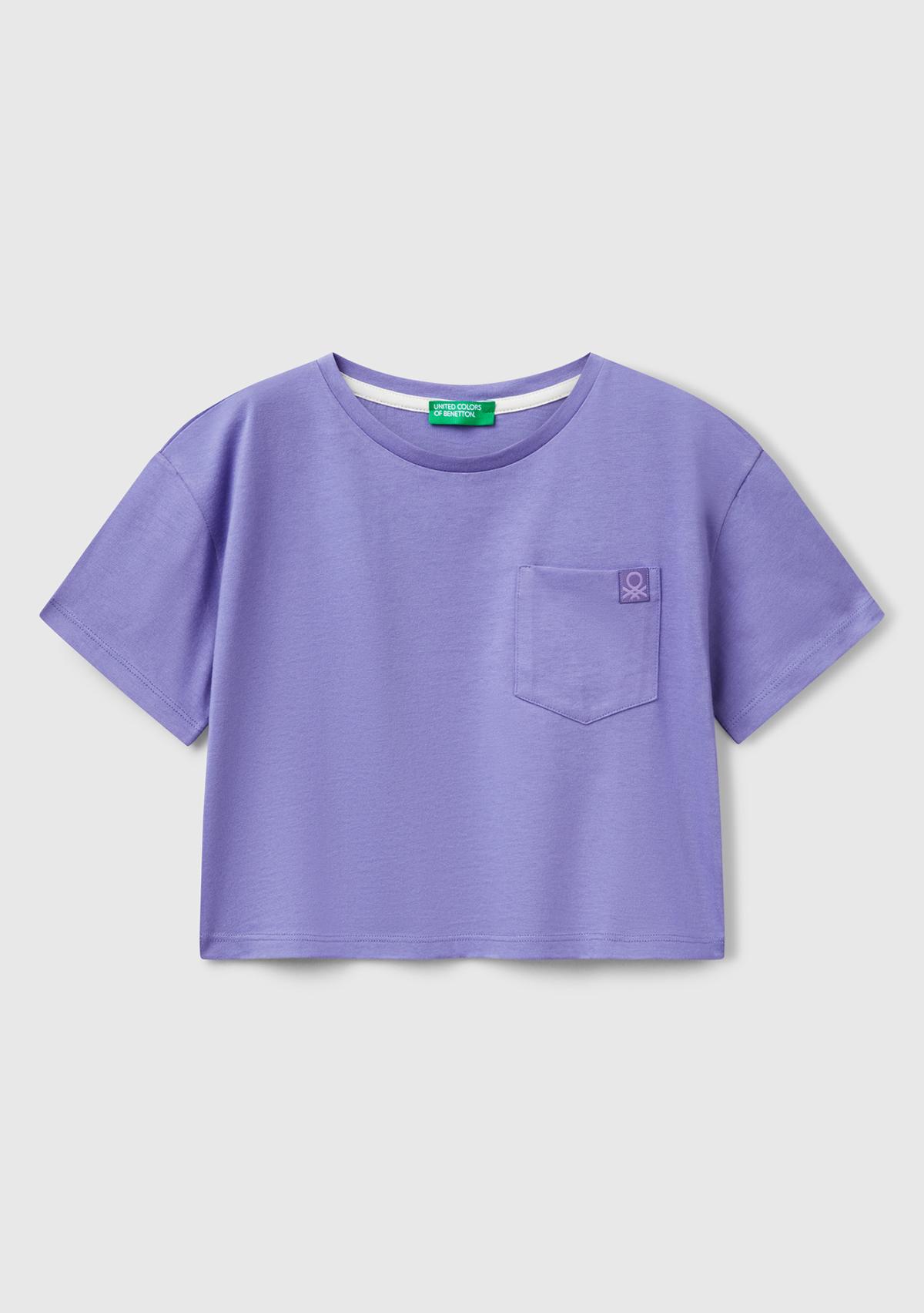 Kız Çocuk Mor Arkası Baskılı Yama Cepli T-Shirt