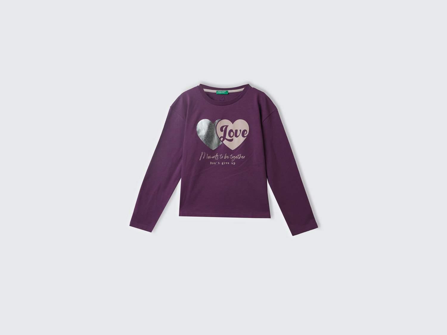 Kız Çocuk Mor Arkası Logo Detaylı Önü Baskılı Geniş Kalıp T-Shirt