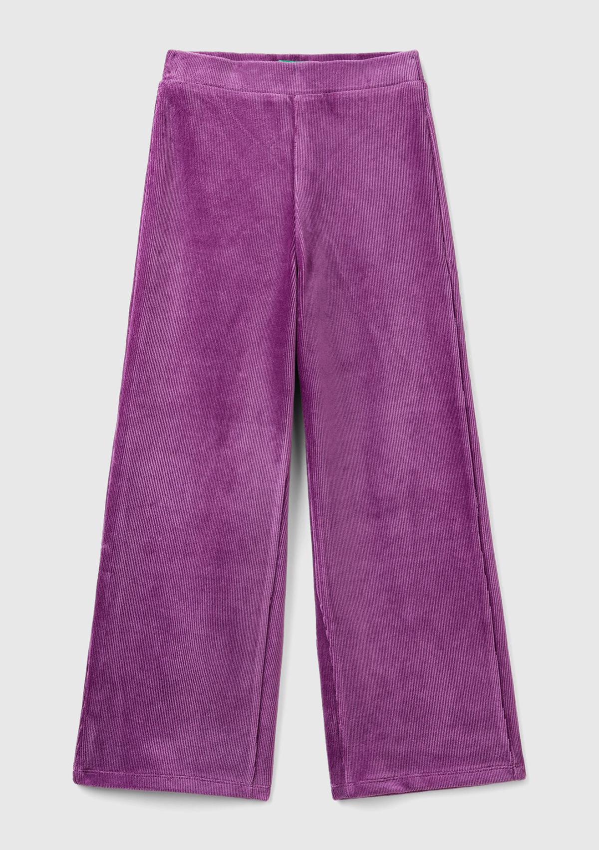 Kız Çocuk Mor Arkası Logo İşlemeli Düz Palazzo Pantolon