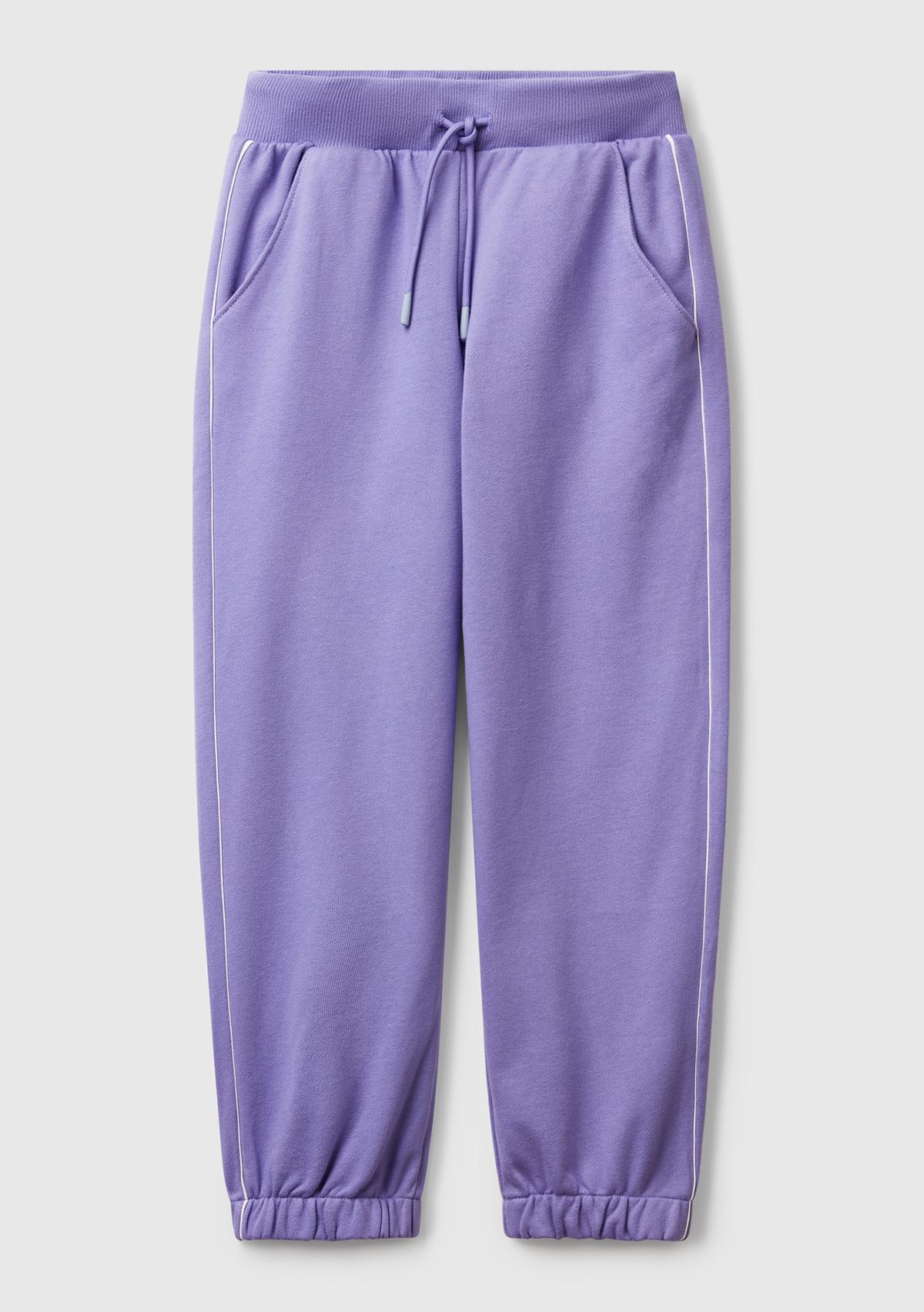 Kız Çocuk Mor Kontrastlı Logo Etiketli Büzgü İpli Eşofman Altı