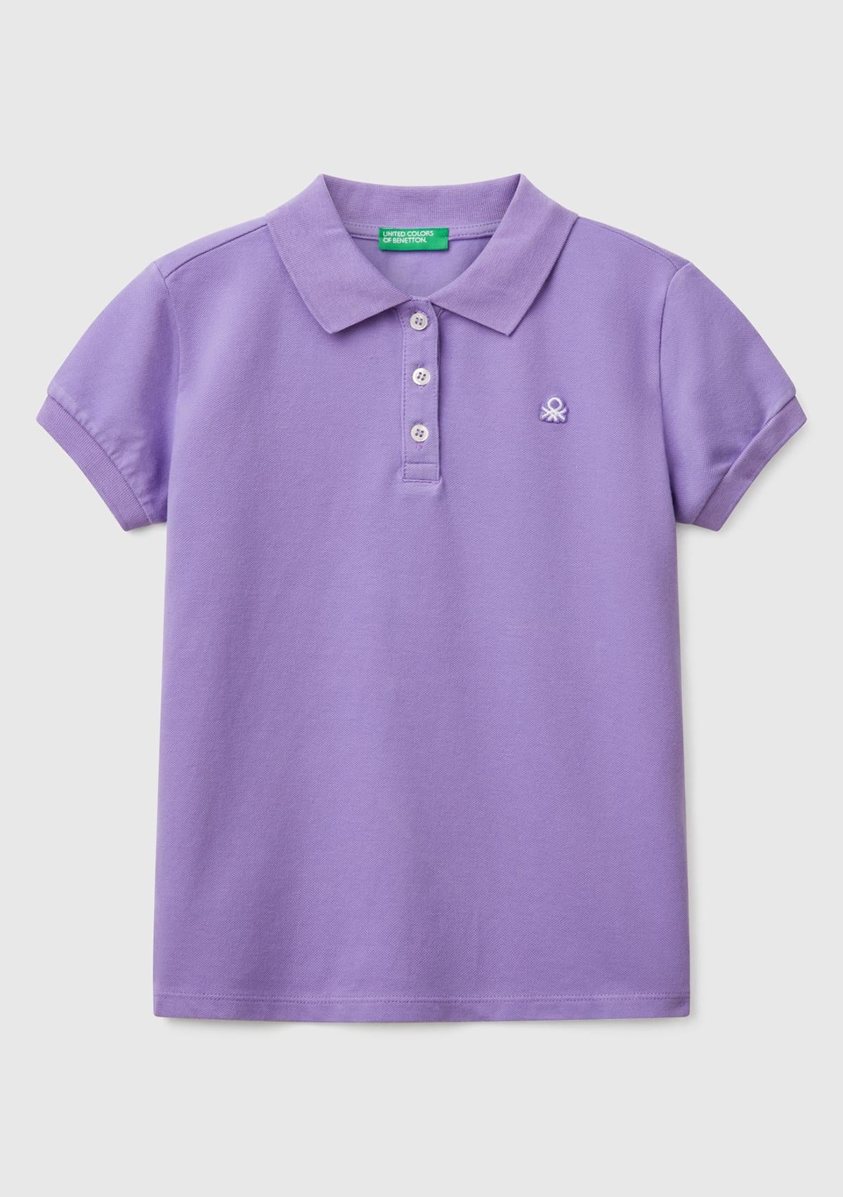 Kız Çocuk Mor Logolu Pike Polo T-Shirt