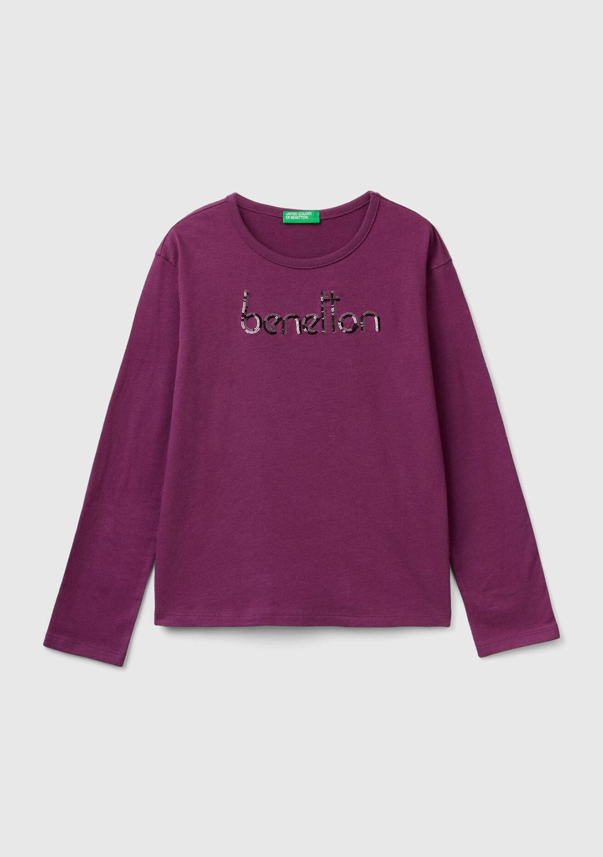 "item_name": "Kız Çocuk Mor Önü Pullu Logo İşlemeli Bisiklet Yaka Uzun Kollu T\u002DShirt",