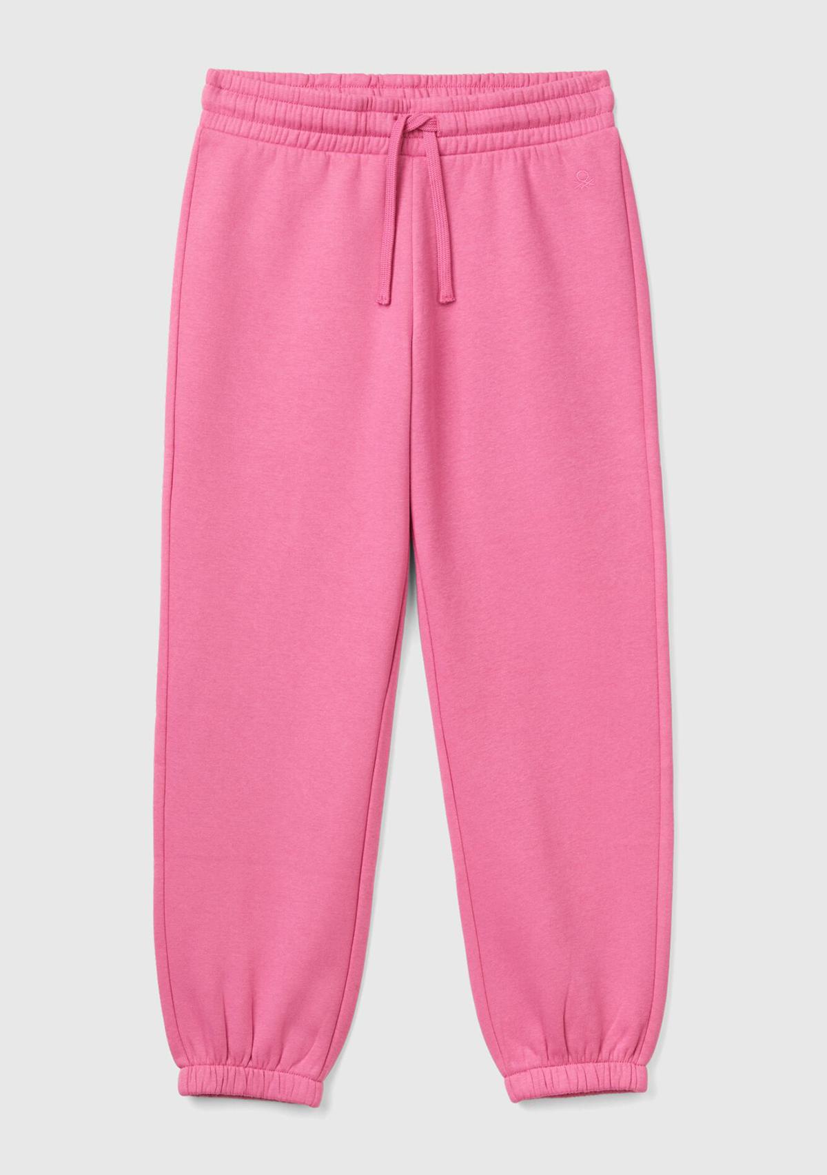 Kız Çocuk Pembe Beli Lastikli Büzgü İpli Lastikli Manşetli Eşofman Altı