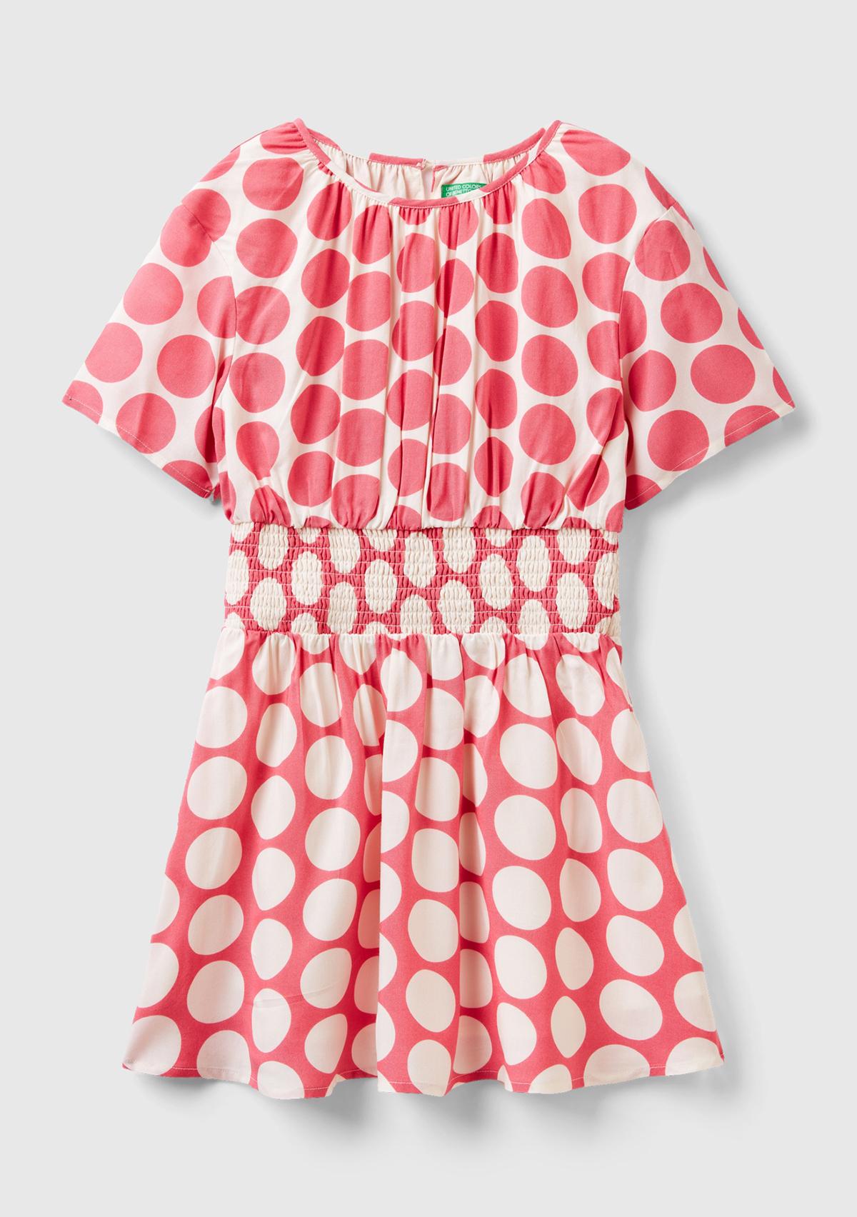Kız Çocuk Pembe Beli Lastikli Puantiye Desenli Elbise
