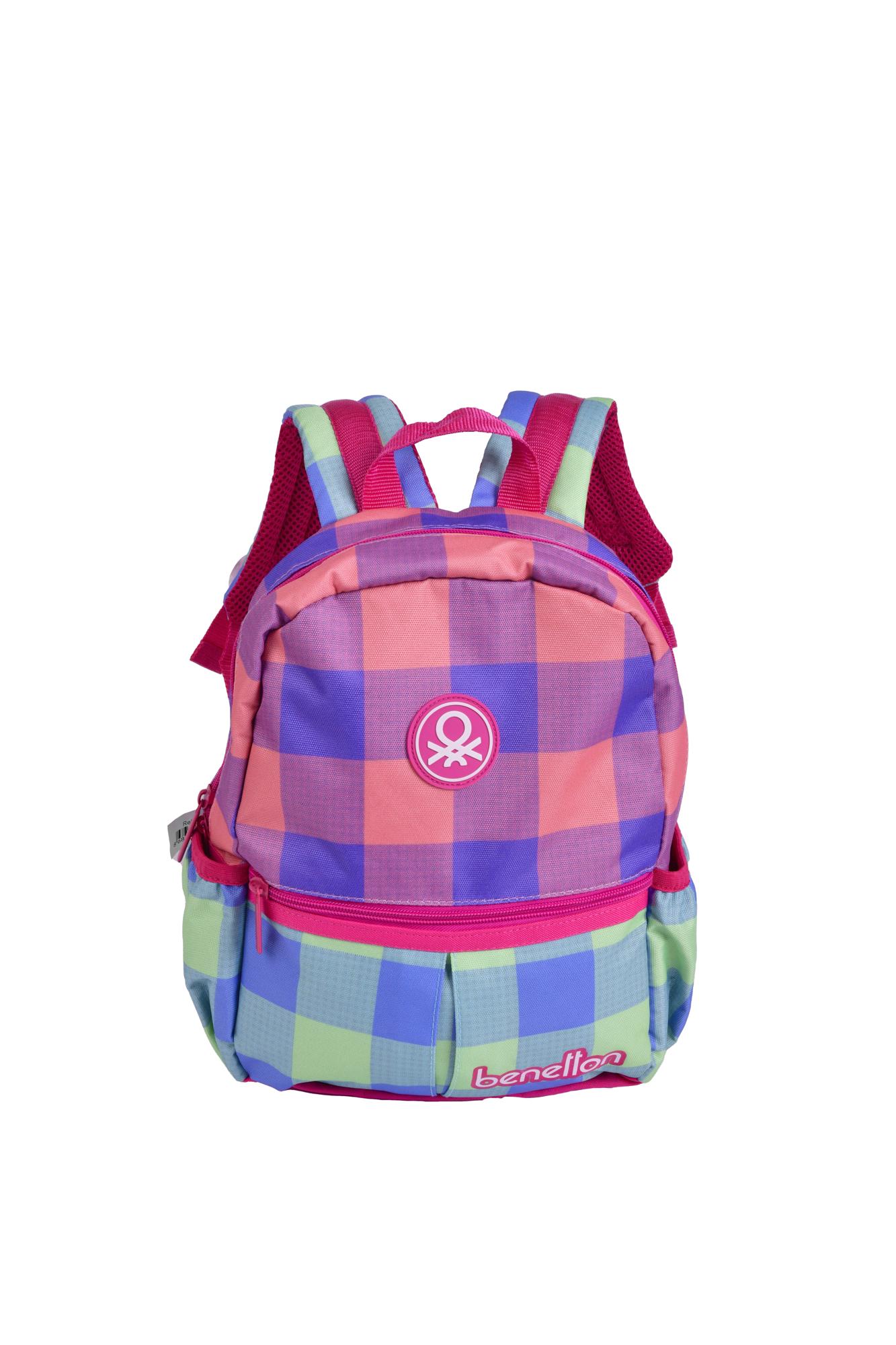 Kız Çocuk Pembe Ekose Desenli Benetton Yazılı Anaokul Çantası