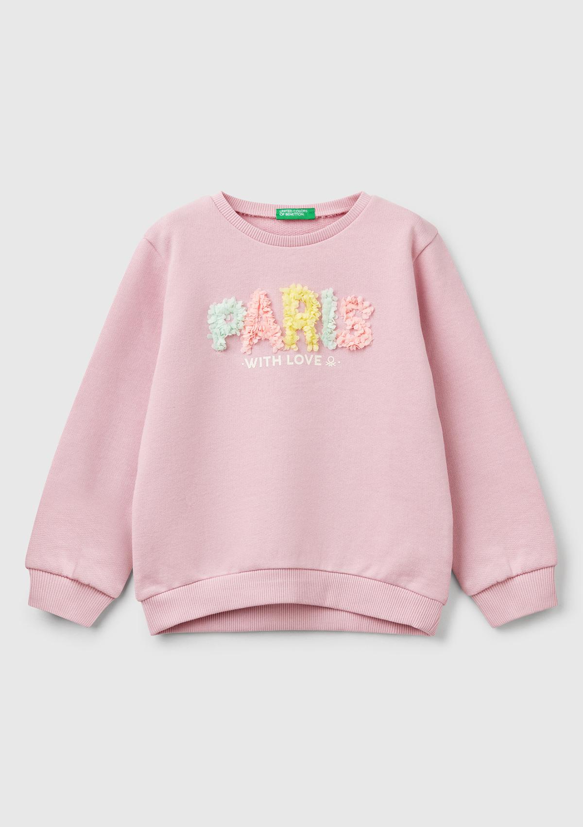 Kız Çocuk Pembe Grafik Baskılı Ribanalı Bisiklet Yaka Sweatshirt
