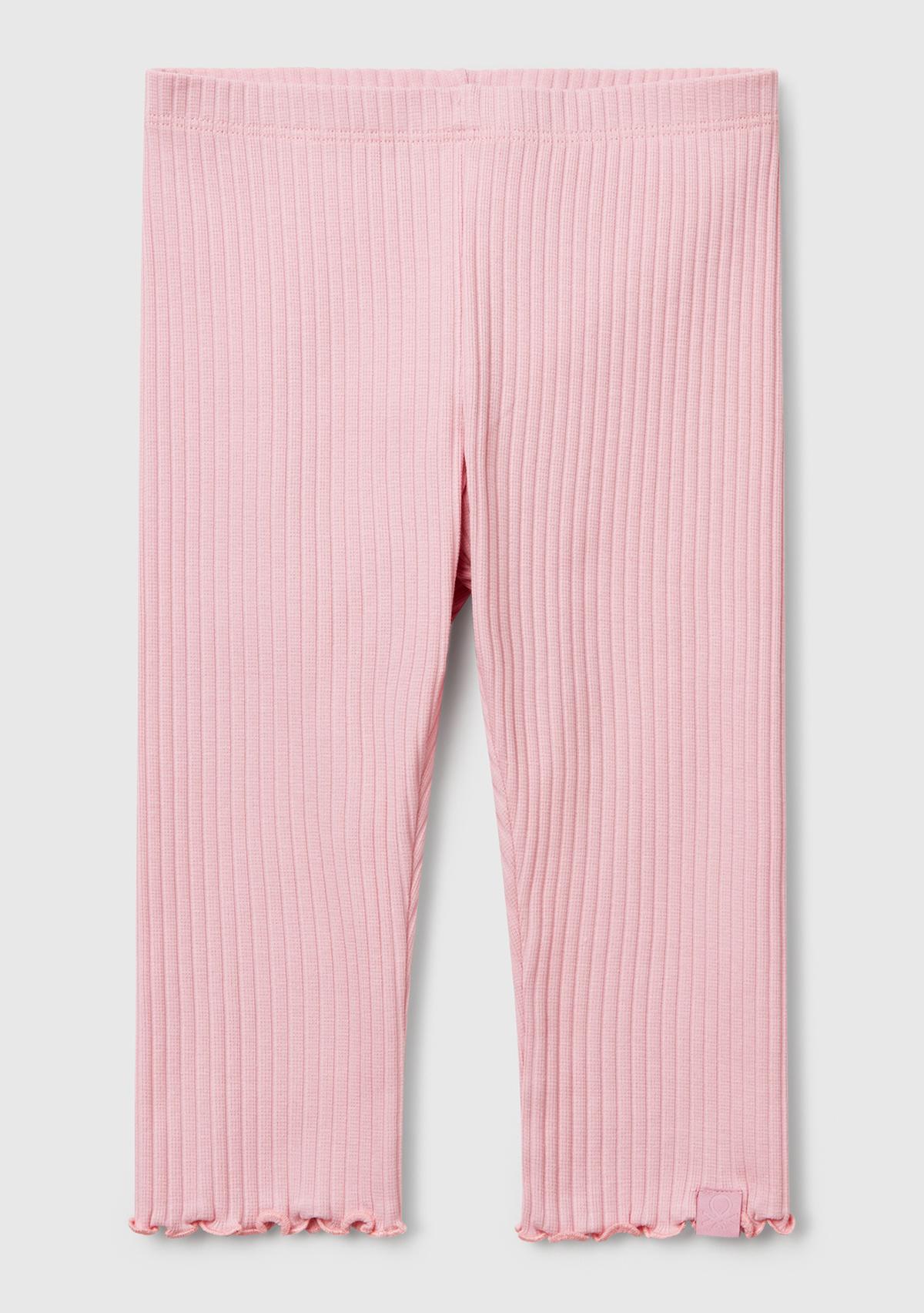 Kız Çocuk Pembe Logo Etiketi Detaylı Nervürlü Tayt