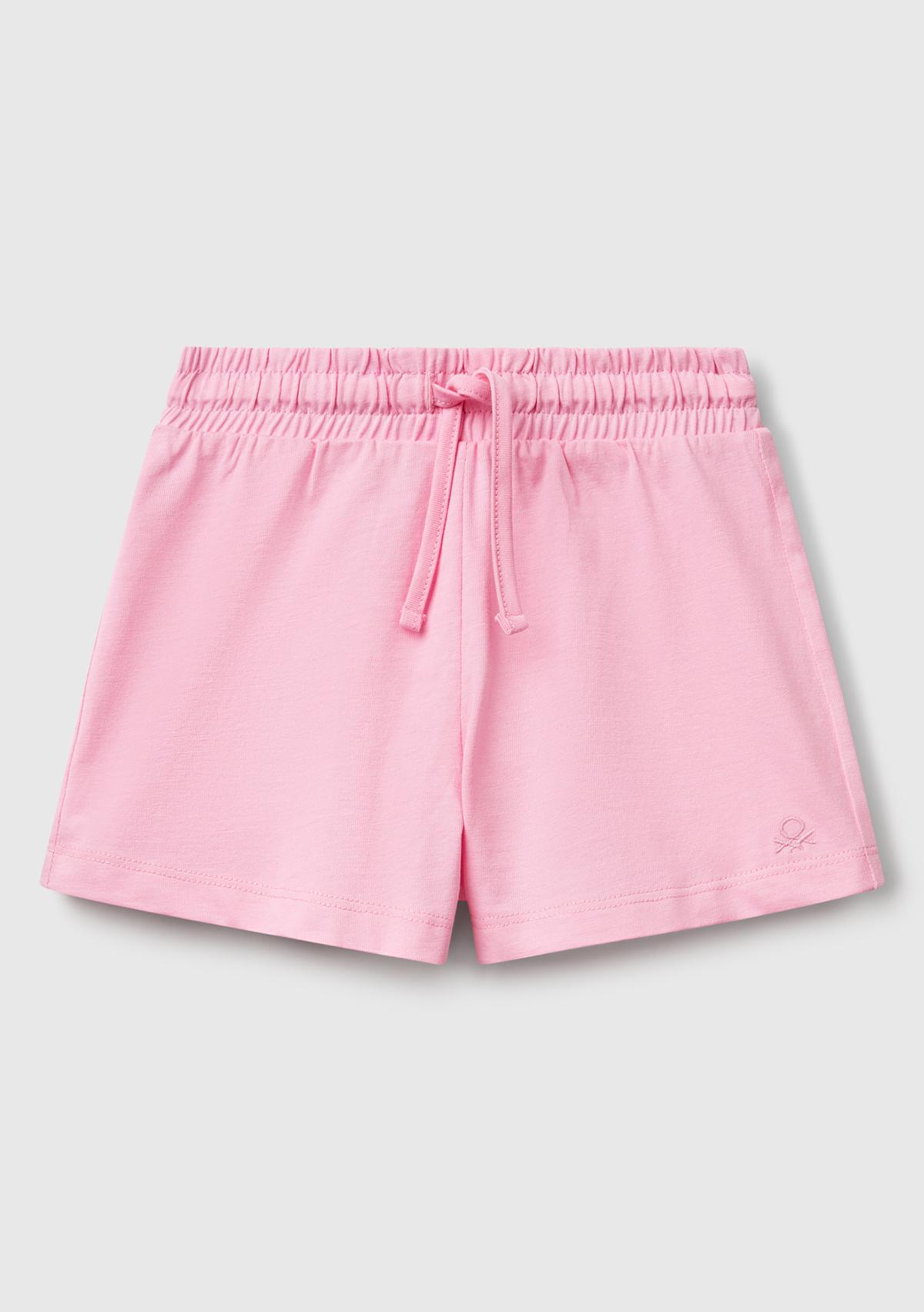 Kız Çocuk Pembe Logo İşlemeli Beli İpli Şort
