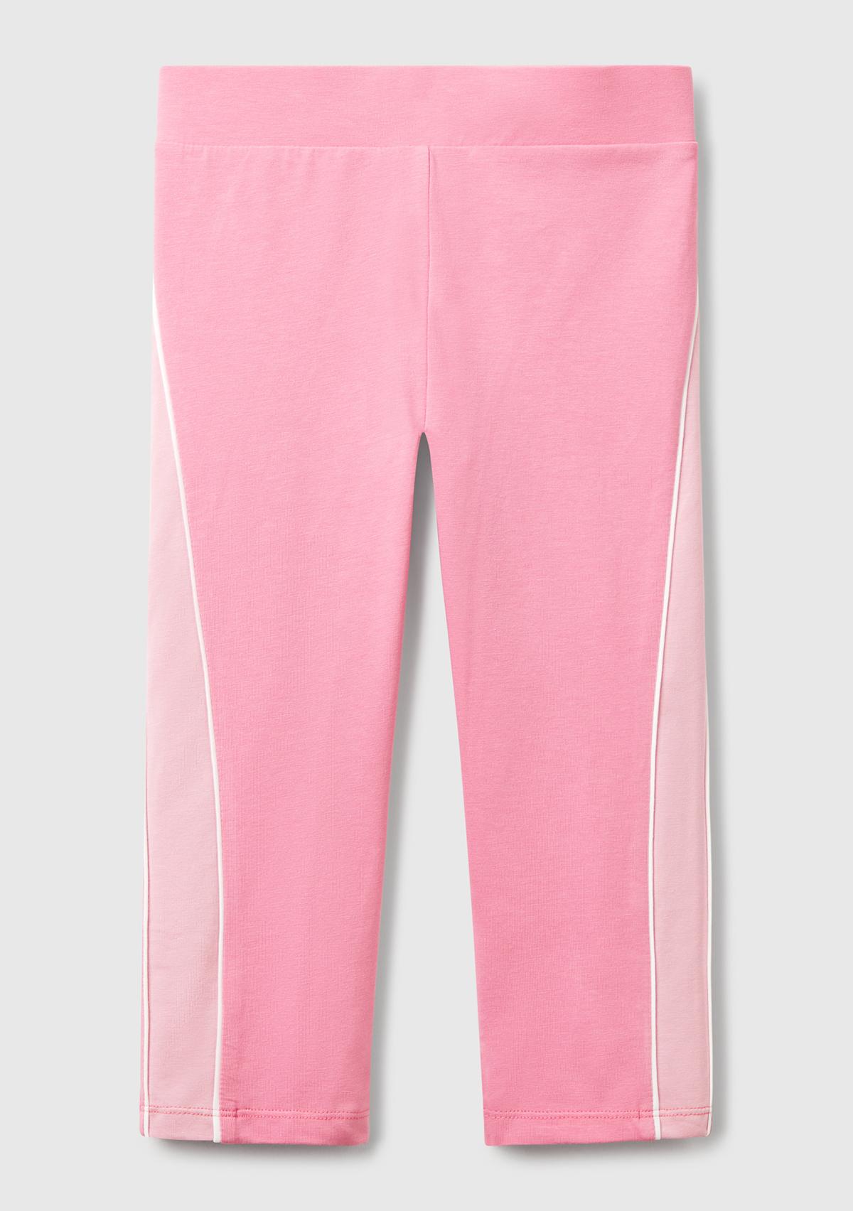 Kız Çocuk Pembe Logolu Yanları Kontrast Renk Detaylı Biyeli Streç Tayt