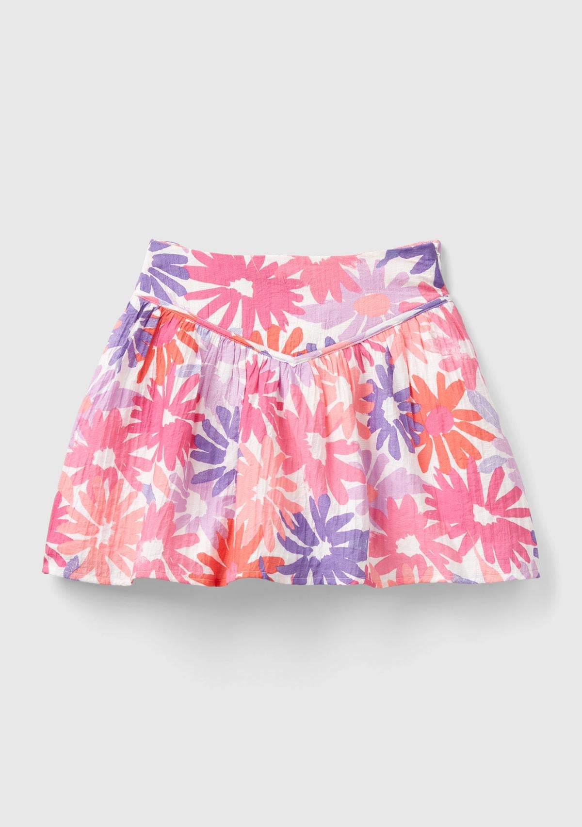 Kız Çocuk Pembe Mix Tamamı Çiçek Baskılı Beli Bant Detaylı Etek