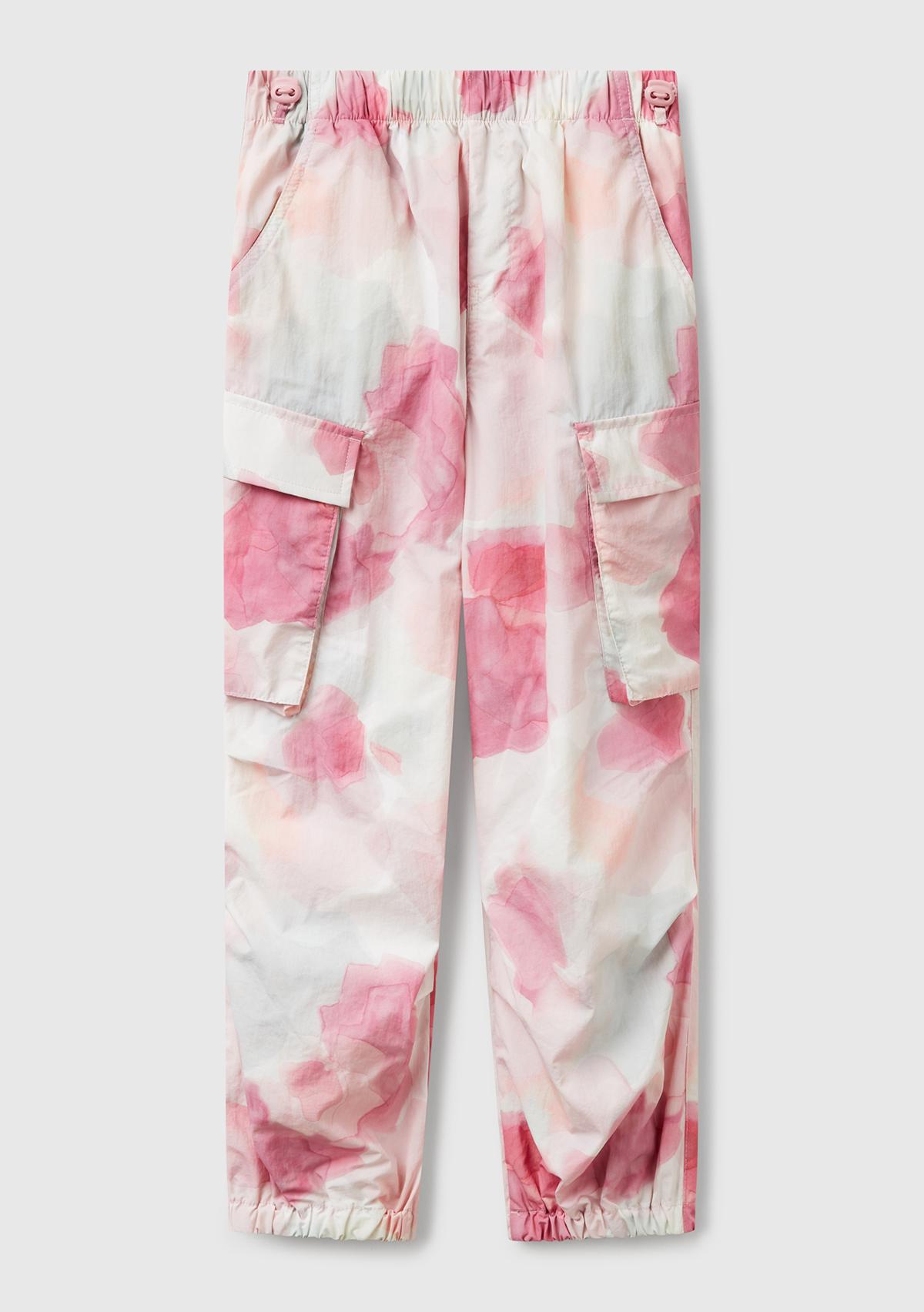 Kız Çocuk Pembe Mix Tamamı Desenli Beli Lastikli Kapak Cepli Paraşüt Pantolon