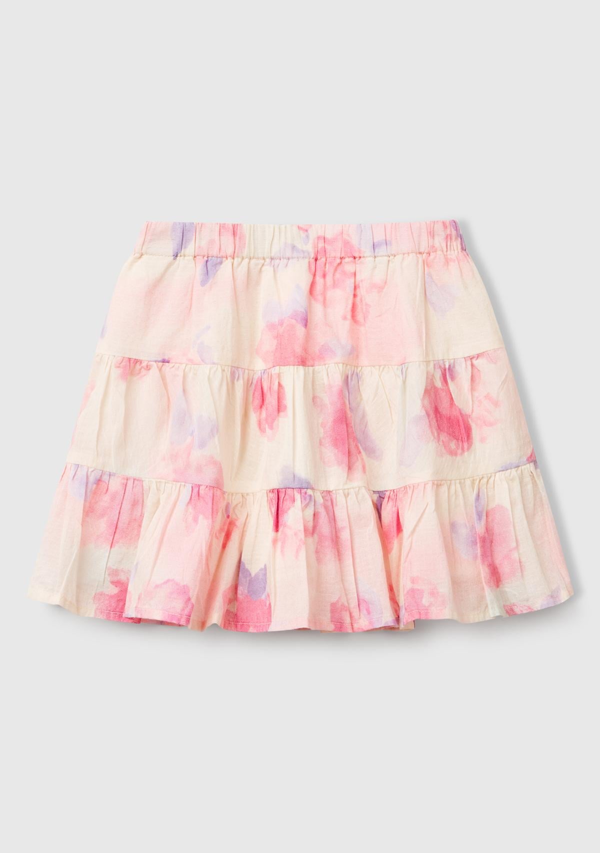 Kız Çocuk Pembe Mix Tamamı Desenli Beli Lastikli Katlı Etek