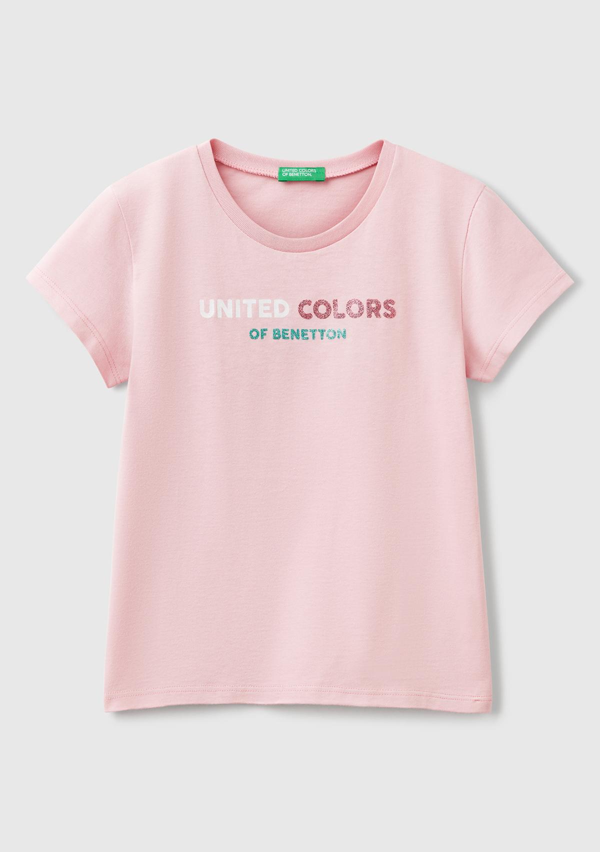 Kız Çocuk Pembe Simli Logo Baskılı T-Shirt