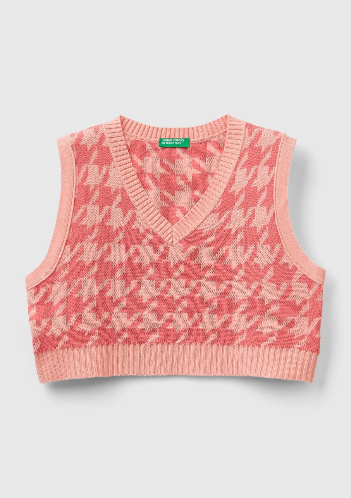Kız Çocuk Pembe Tamamı Desenli V Yaka Crop Süveter