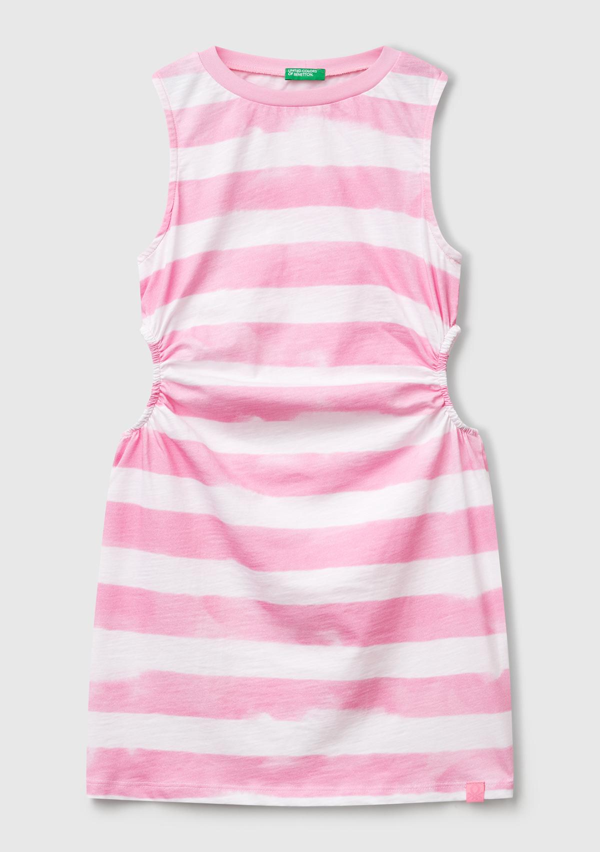 Kız Çocuk Pembe Yanı Pencereli Çizgili Kolsuz Elbise
