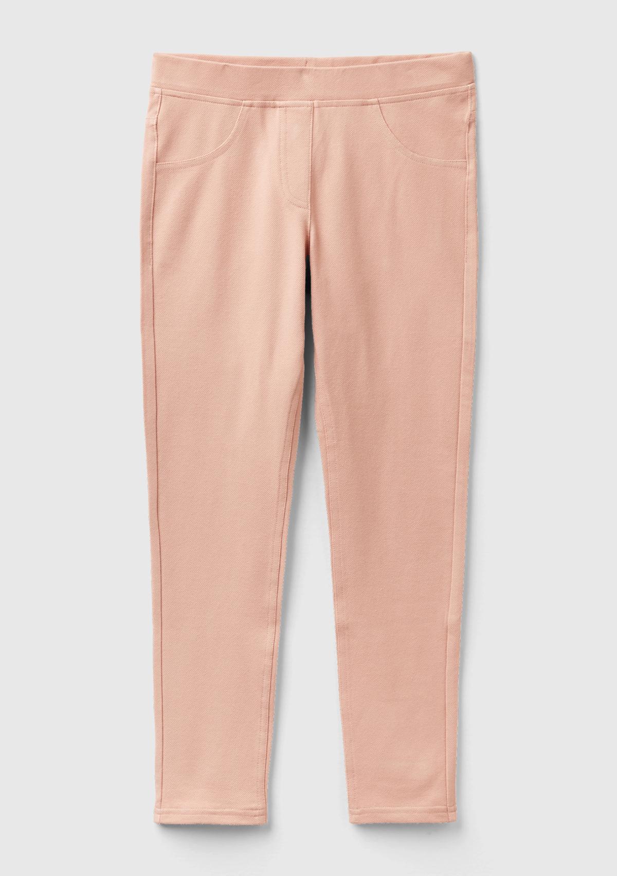 Pamuk karışımlı streç kumaştan üretilmiş, normal kesim, cepli görünüme sahip jegging kız çocuk pantolonu. Elastik bel bandı sayesinde kolay giyilebilir, konforlu bir seçenek. Ön ve arka cebinde bulunan logo işlemesiyle Benetton ruhunu yansıtır.
