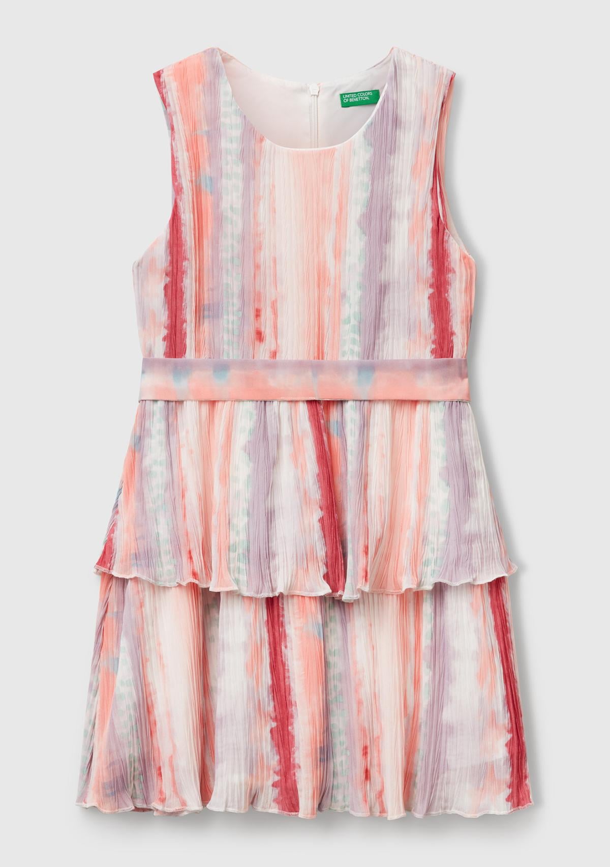 Kız Çocuk Renkli Tamamı Desenli Pileli Kuşaklı Kolsuz Katlı Elbise