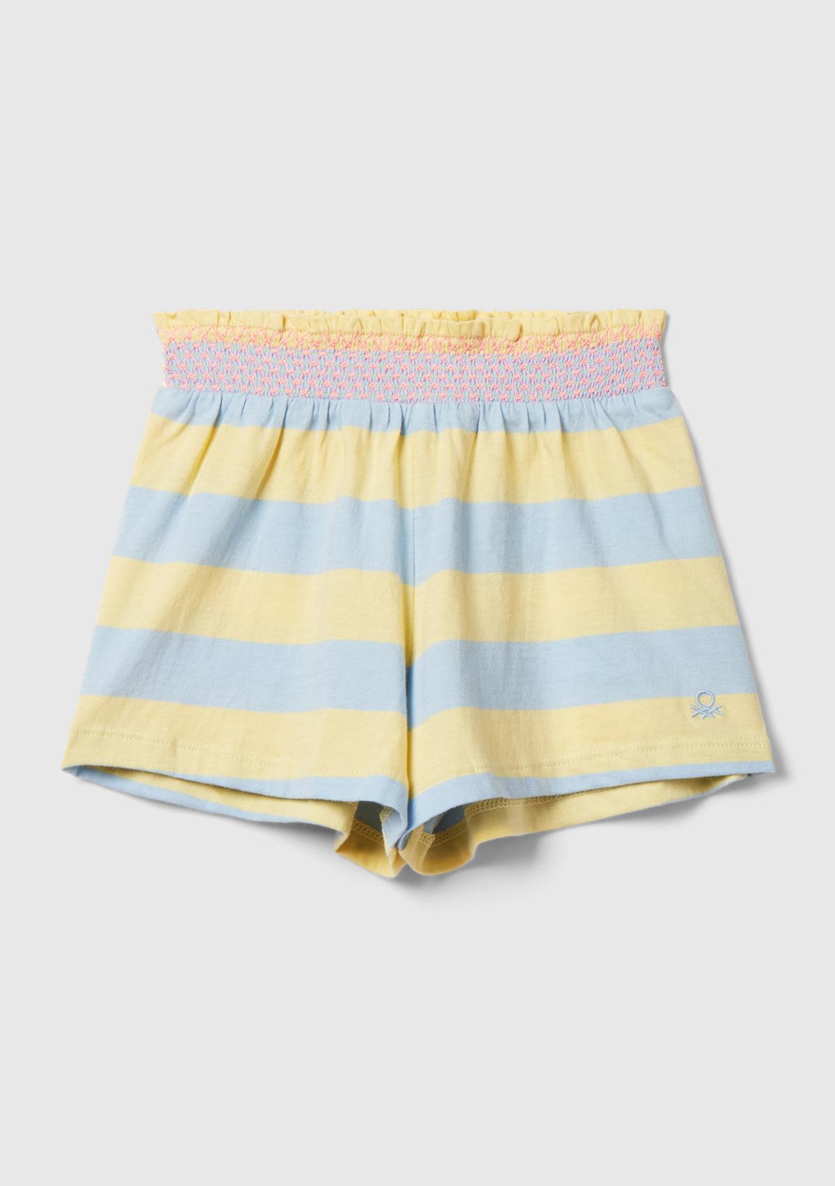 Kız Çocuk Sarı-Mavi Önü Logo İşlemeli Renk Bloklu Beli Büzgülü Kloş Kesim Şort