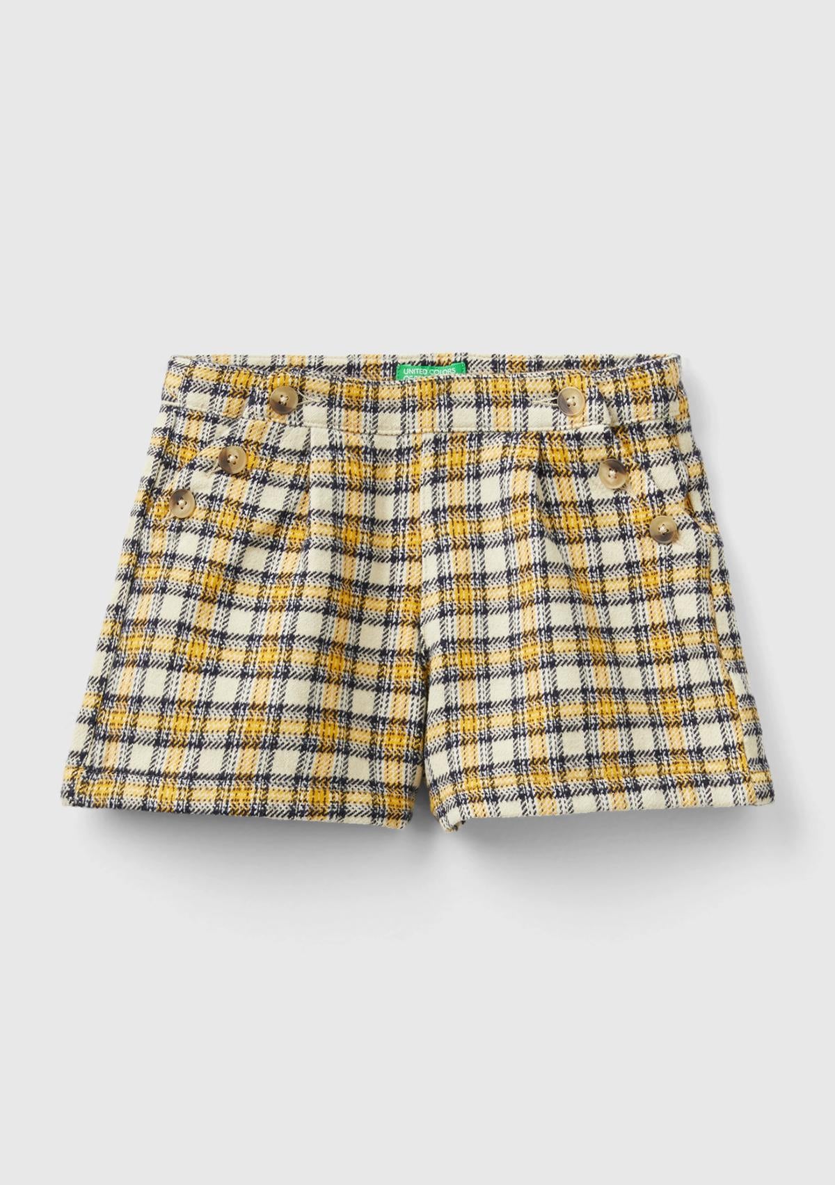Kız Çocuk Sarı Mix Ekoseli Mini Şort