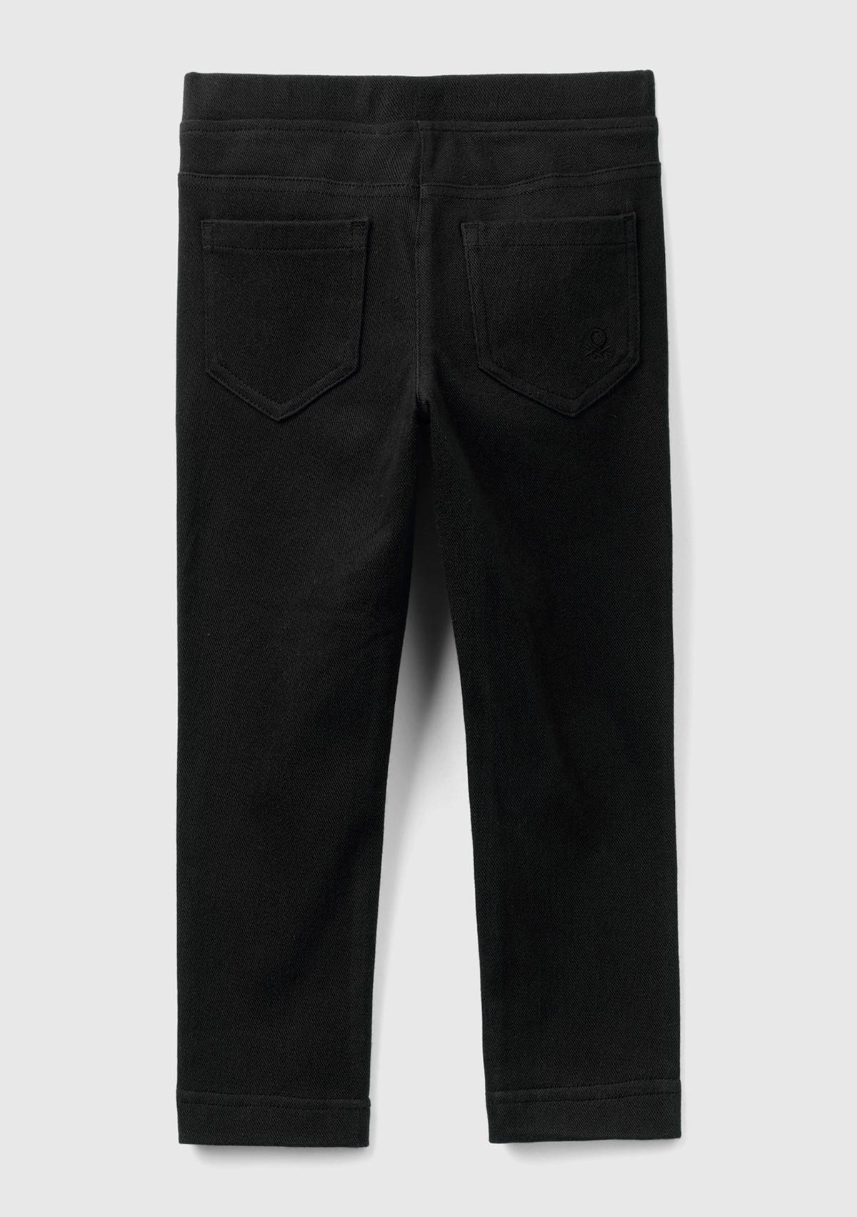 Kız Çocuk Siyah Arka Cebi Logo İşlemeli Beli Lastikli Dar Kesim Pantolon