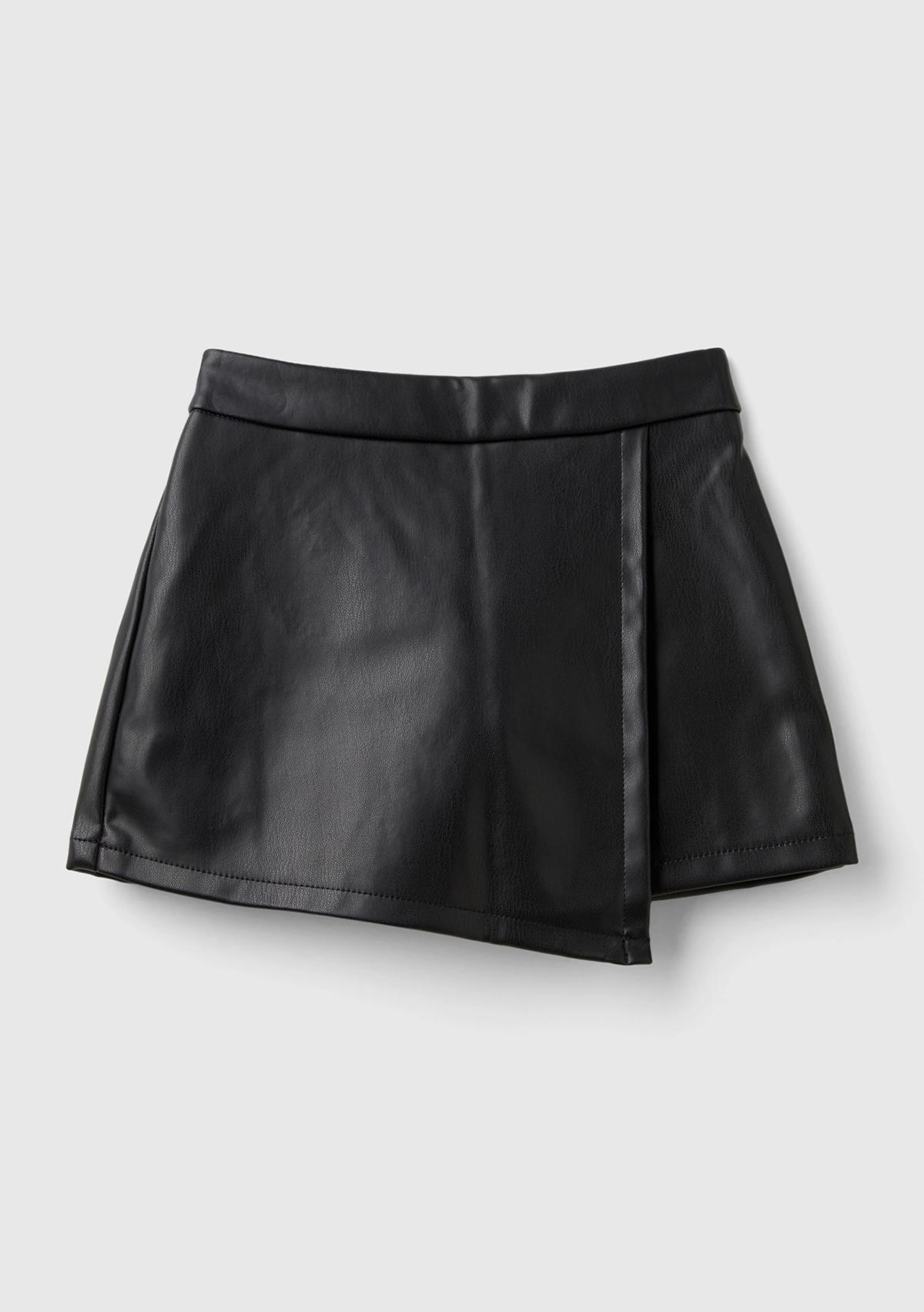 Kız Çocuk Siyah Arkası Elastik Belli Önü Parçalı Şort Etek