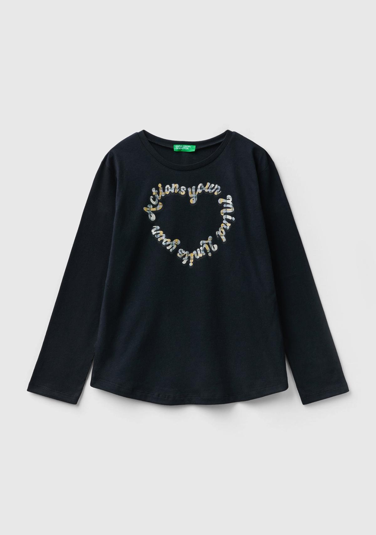 Kız Çocuk Siyah Baskılı T-Shirt