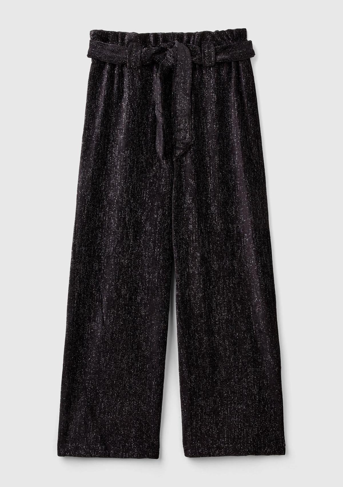Kız Çocuk Siyah Beli Fırfırlı Kuşaklı Geniş Paça Eşofman Altı