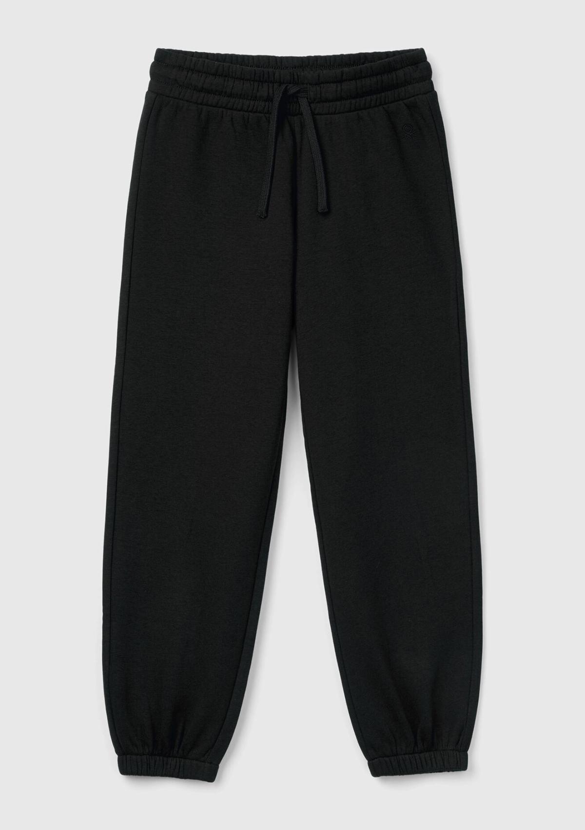 Kız Çocuk Siyah Beli Lastikli Büzgü İpli Lastikli Manşetli Eşofman Altı