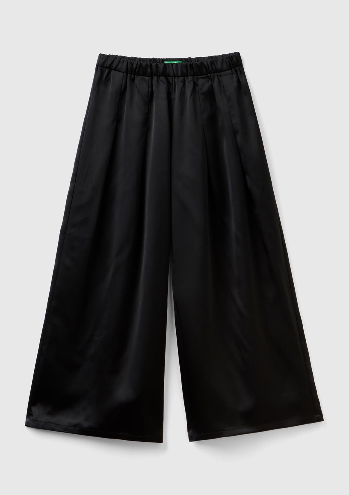 Kız Çocuk Siyah Beli Lastikli Geniş Paça Pantolon