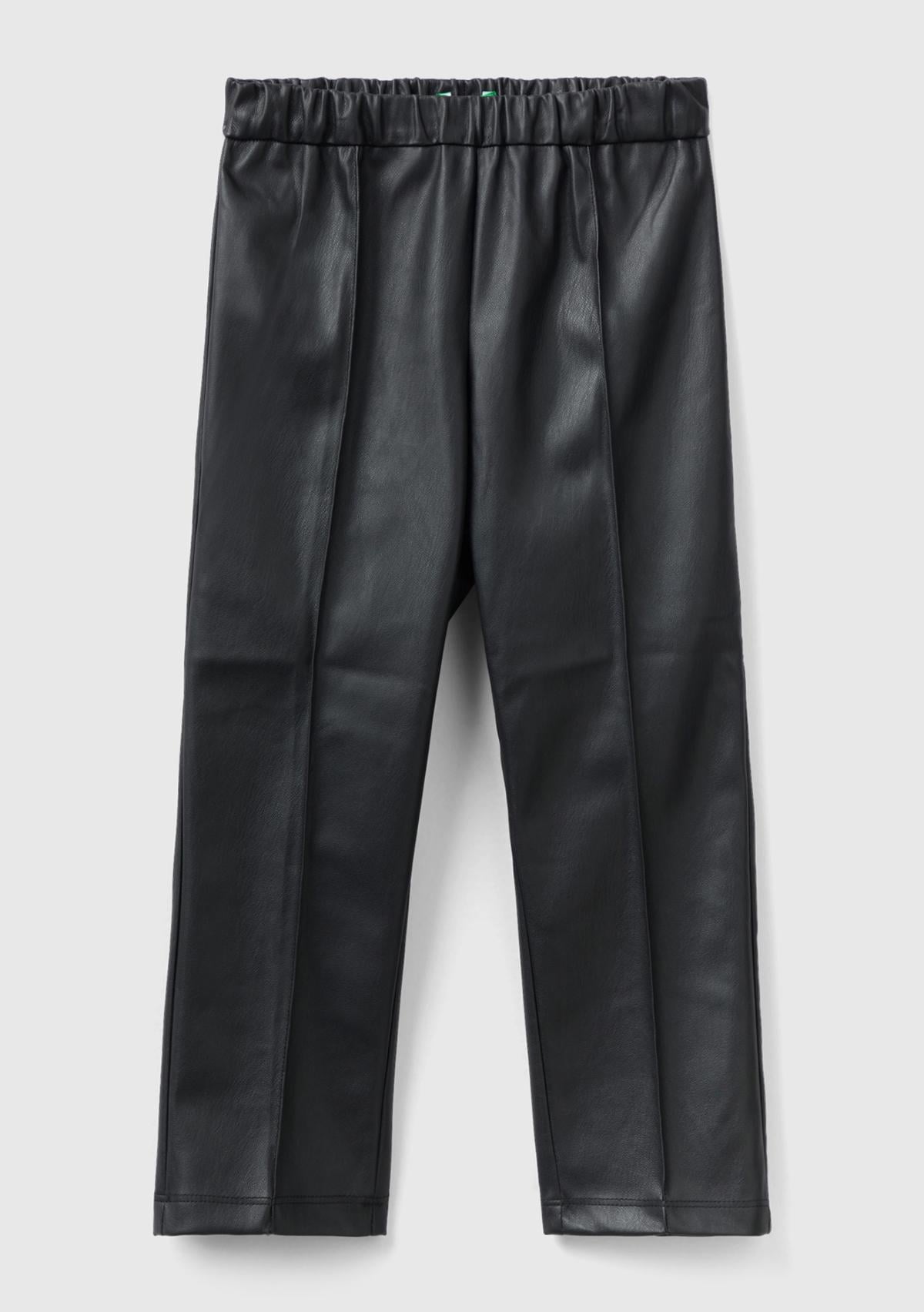 Kız Çocuk Siyah Beli Lastikli Suni Deri Pantolon