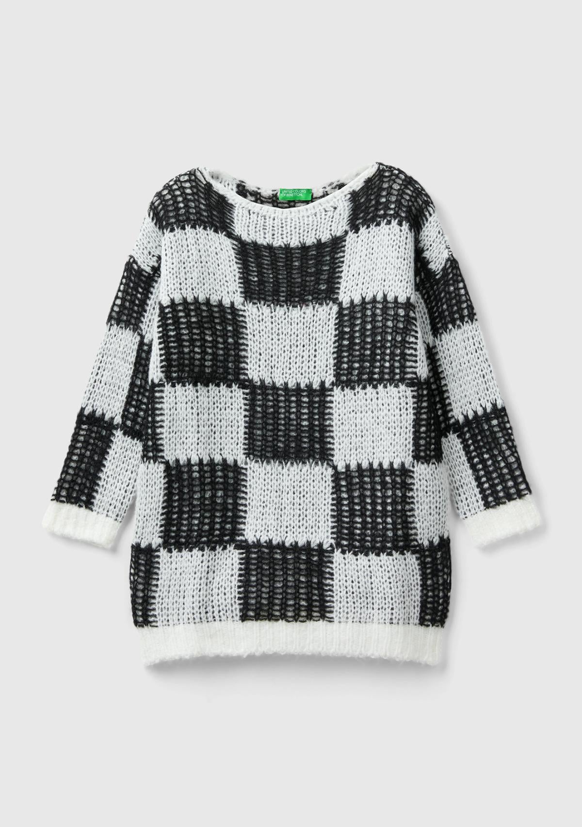 Kız Çocuk Siyah-Beyaz Dama Desenli Kazak