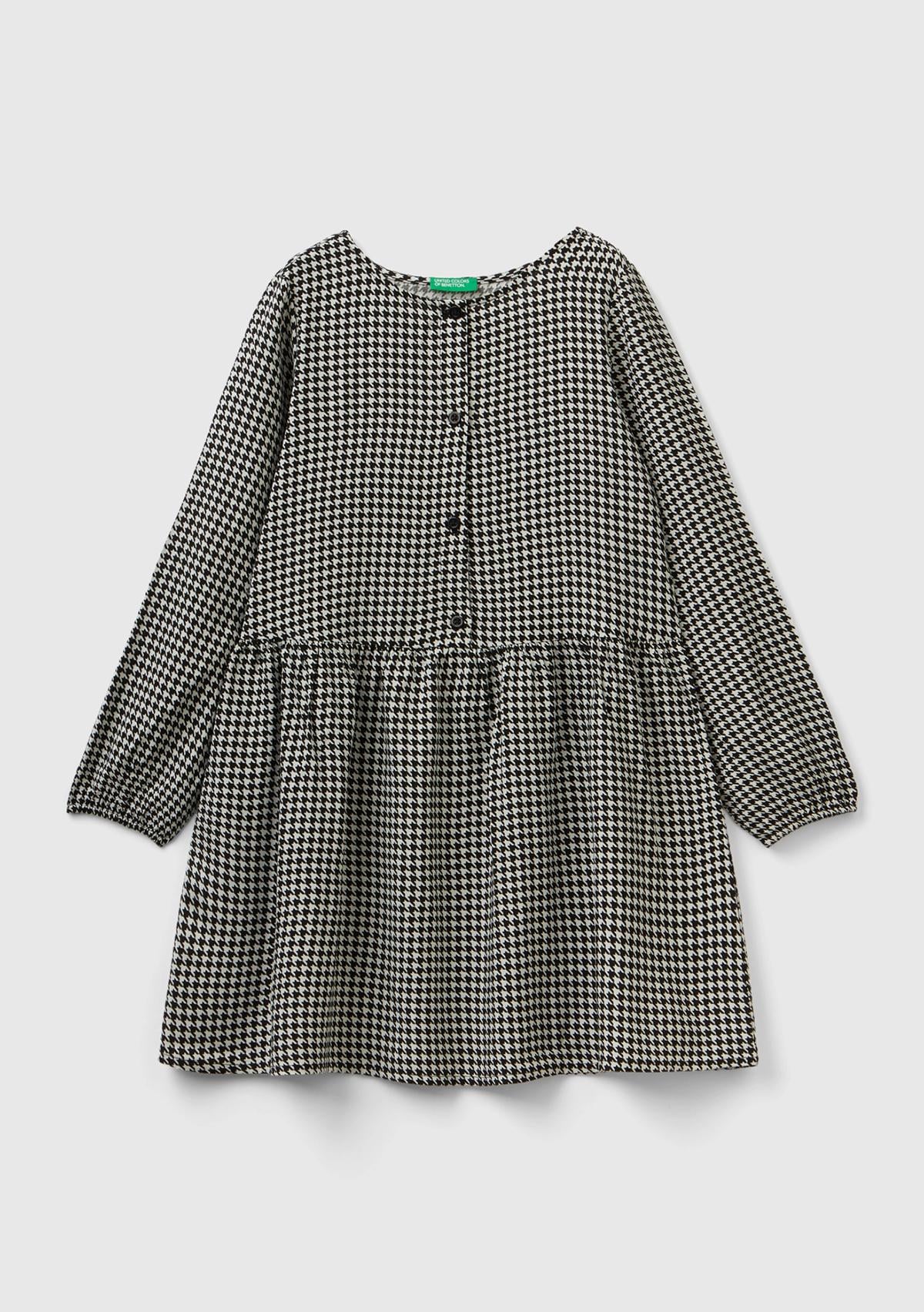 Kız Çocuk Siyah Düğmeli Tamamı Mikro Desenli Volanlı Elbise