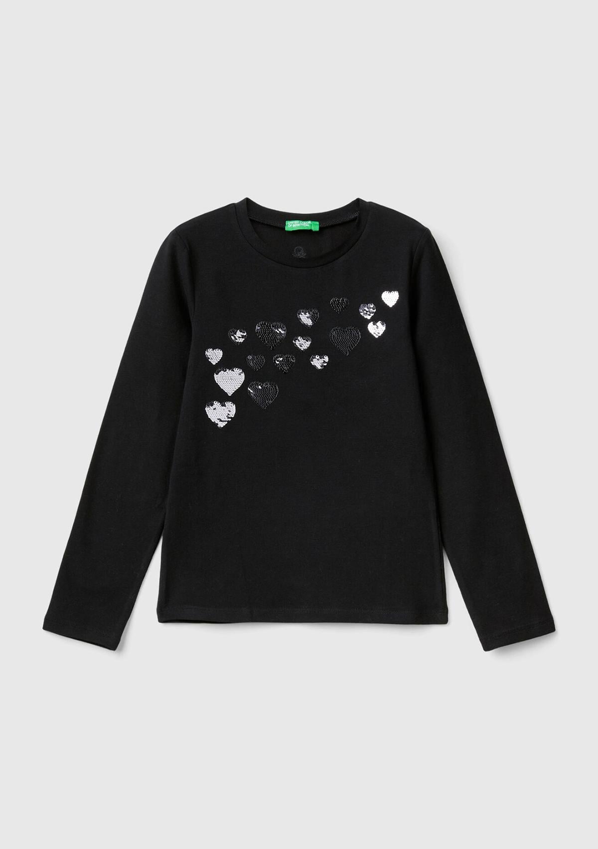 "name": "Kız Çocuk Siyah Önü Pullu Grafik Detaylı Dar Kesim Uzun Kollu T\u002DShirt",